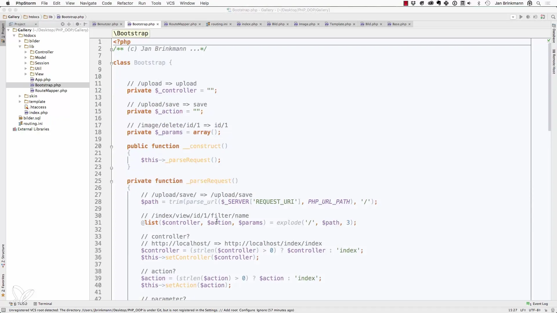 public function __construct() 메서드를 추가하세요. 이 메서드는 클래스의 개체가 생성될 때 호출됩니다. 먼저 라우트를 로드할 기본 경로를 설정해야 합니다. 한 단계 위로 올라가 routing.ini 파일에 접근합니다. 유닉스 파일 시스템에서는..를 사용하여 경로를 올바르게 지정합니다.