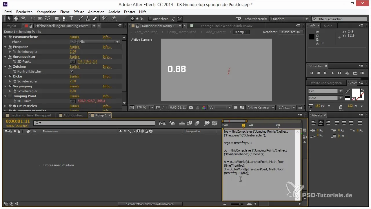 3D-객체의 애니메이션은 After Effects에서 도전적이지만 매우 보람 있는 작업이 될 수 있습니다. 특히 경로에 스프링 포인트를 사용하면 많은 창의적인 가능성을 열어줍니다. 이 튜토리얼에서는 표현을 사용하여 정의된 경로를 따라 점이 “점프”하는 간단한 애니메이션을 만드는 방법을 배웁니다. 움직임을 계단식으로 조정하고 흥미로운 동적 효과를 생성하는 방법을 배울 수 있습니다.