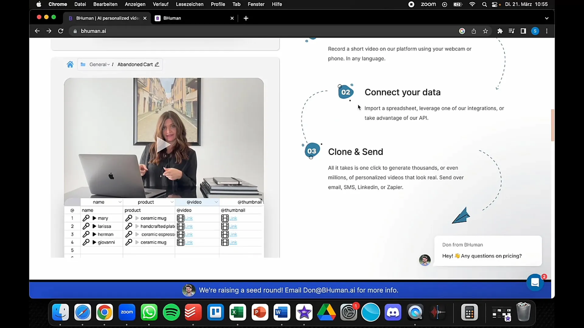 - BHuman을 사용하면 고객에게 직접 말을 걸 수 있는 맞춤형 동영상 메시지를 만들 수 있습니다.