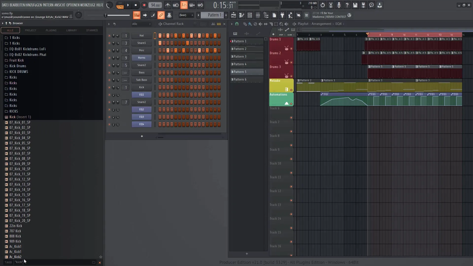 먼저 FL Studio 21을 엽니까. 화면 왼쪽에는 파일 브라우저가 있어 파일에 빠르게 액세스할 수 있습니다. 디자인이 변경되어 새로운 기능을 즉시 알 수 있을 것입니다.