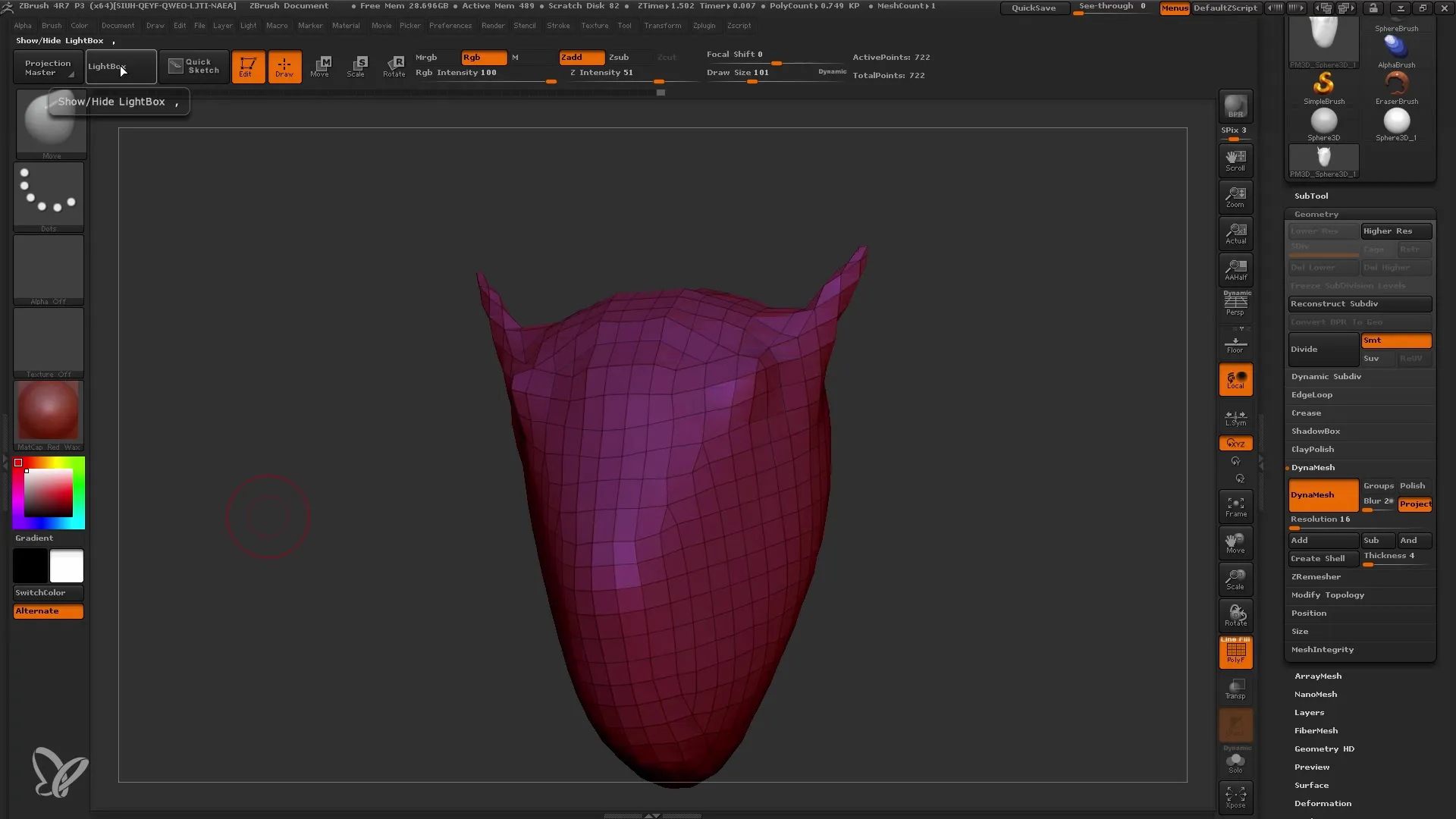 Dynamesh란 무엇인가요?Dynamesh는 모델의 기하학을 동적으로 변경해주는 ZBrush의 도구입니다.
