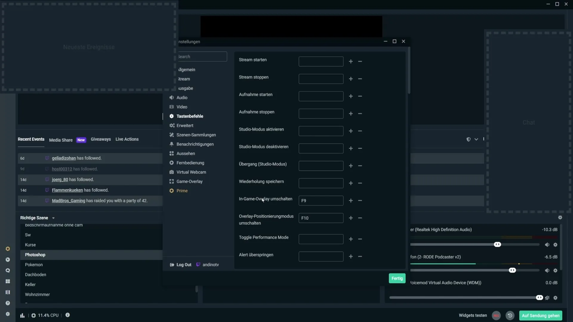 마지막으로 In-Game-Overlay의 단축키를 조정해야 합니다. Streamlabs OBS의 "단축키" 설정으로 이동하여 오버레이 전환을 위한 단축키를 설정할 수 있습니다.
