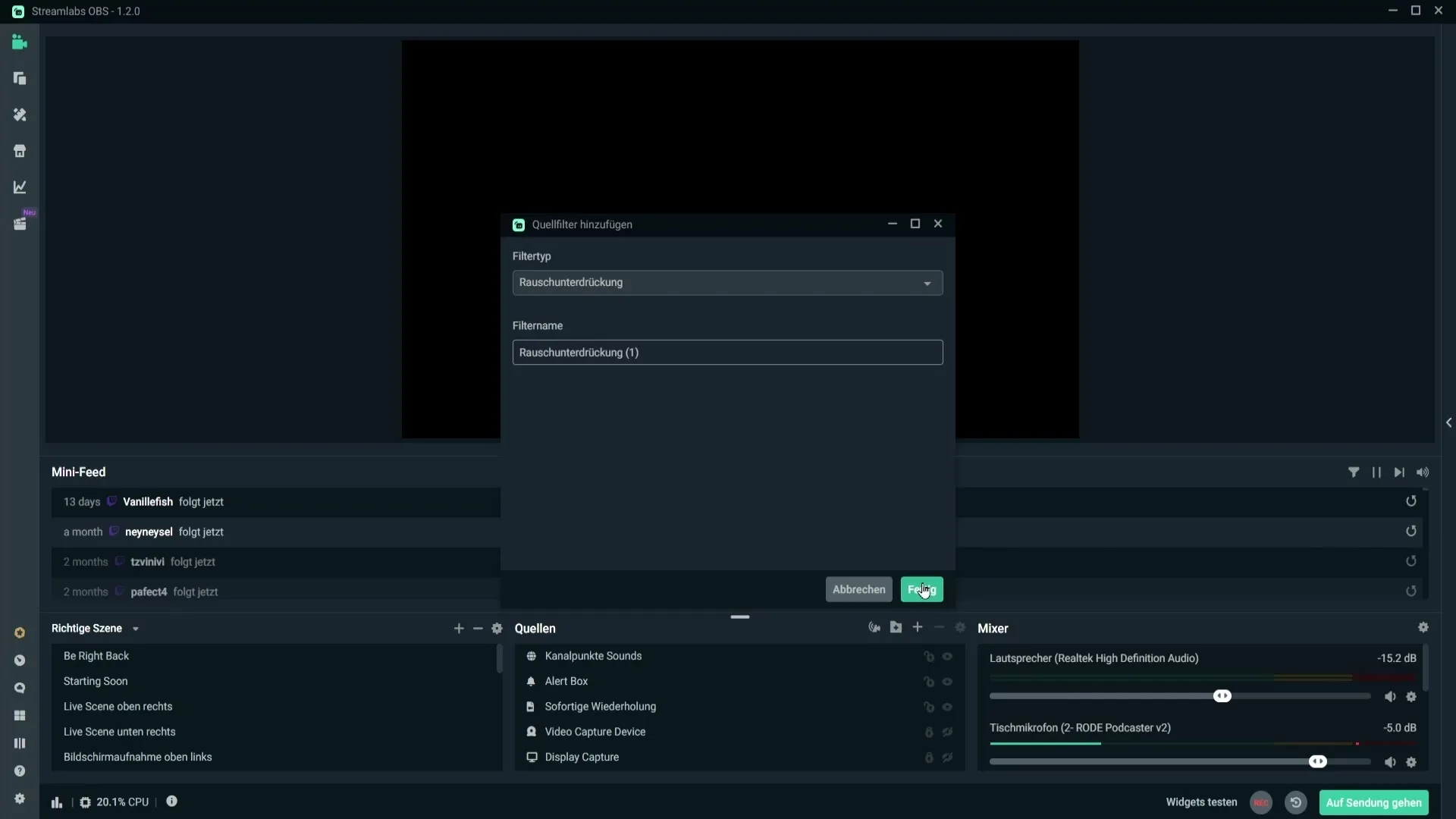 설정을 저장하고 필터를 활성화하기 위해 "완료"를 클릭하세요. 이제 Streamlabs OBS에 노이즈 제거 필터를 성공적으로 설정하여 마이크 노이즈를 최소화했습니다.