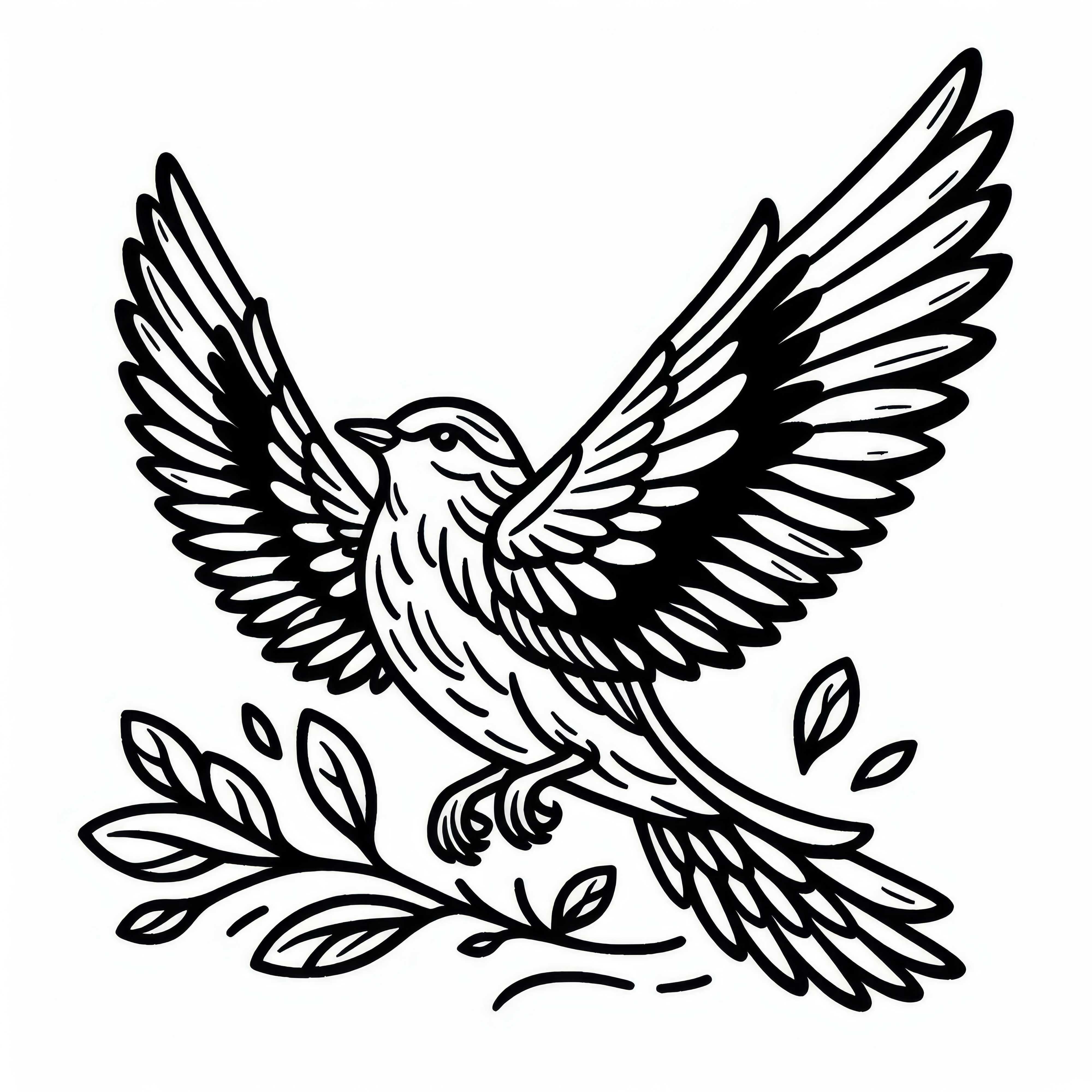 Žvirblio piešimo lapas Paukštis Nemokamai