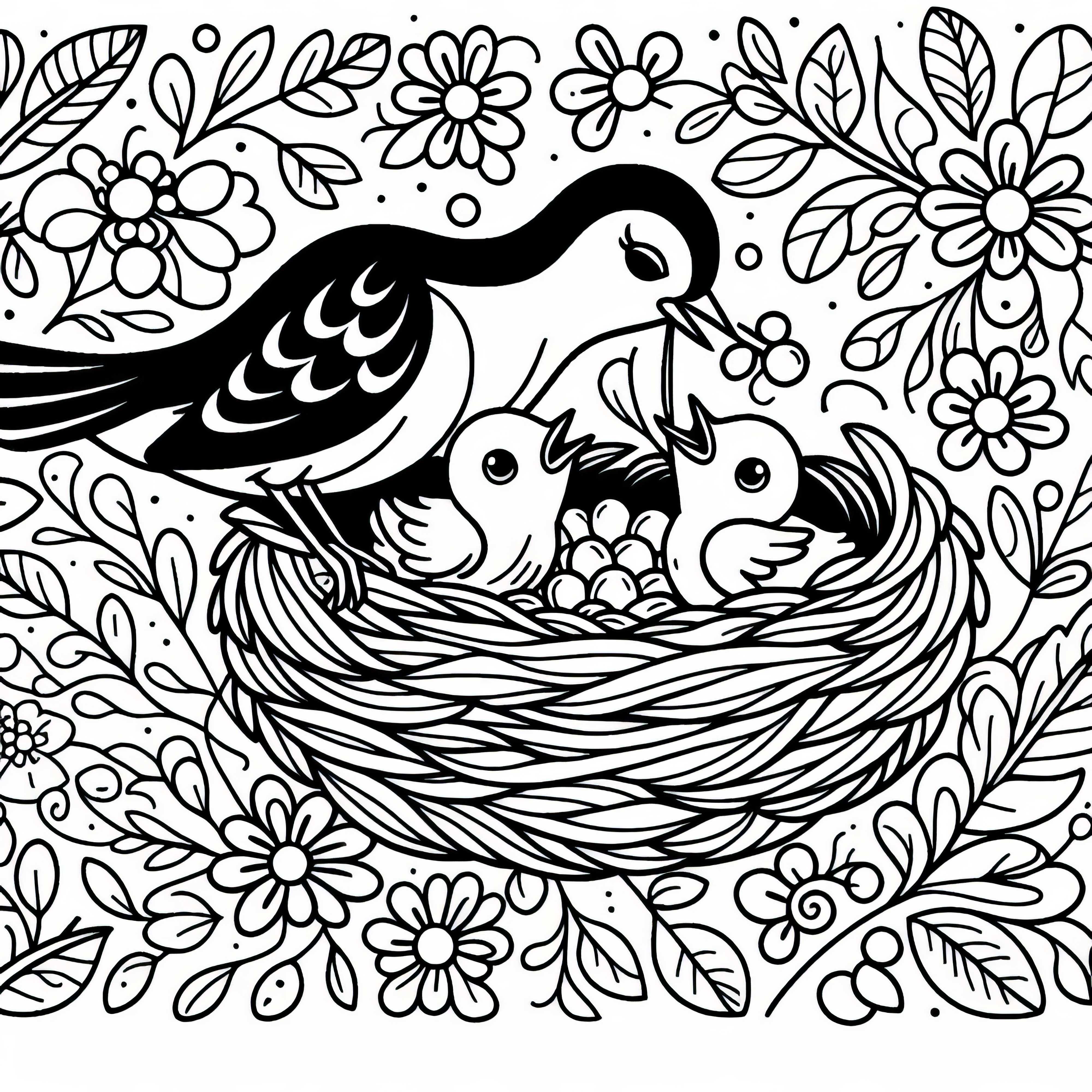 Jauni paukščiai lizde – nemokama spalvinimo forma