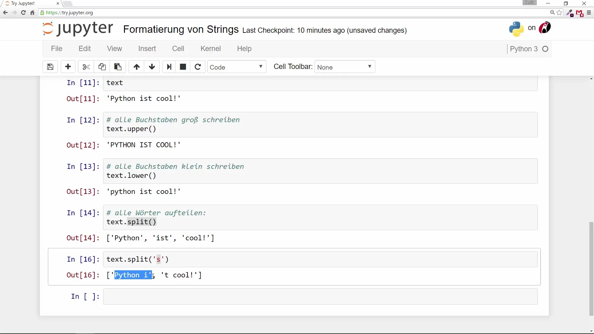Norėdami sužinoti Strings ilgį, naudokite funkciją len(). Tarkime, turite tekstą „Python yra šaunus“. Norėdami gauti ilgį, vykdykite šią komandą:
