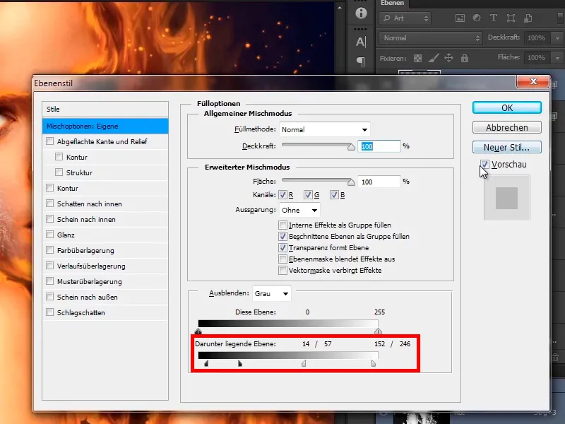 Dabar jūs beveik baigėte. Norėdami tai dar labiau pritaikyti prie odos struktūros, spustelėkite dvigubai ant "Frost" lygio. Čia esate vadinamuose Lygių stiliuose.