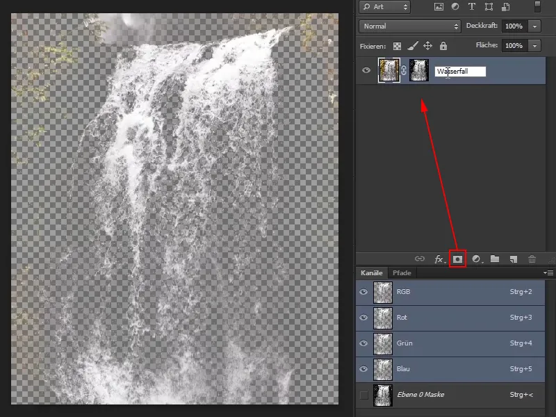 Jei dabar dar kartą priartinsite prie vaizdo, pamatysite, kad vandens krioklis vietomis nėra idealiai atlaisvintas ir likę pilki šešėliai. Dabar jie turėtų būti pašalinti.