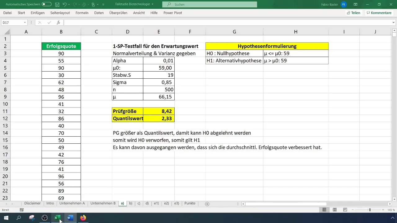 Statistiskie testi ir būtisks datu analīzes un interpretācijas rīks, jo īpaši tādās jomās kā biotehnoloģija, kur ļoti svarīgi ir precīzi rezultāti. Šajā pamācībā es parādīšu, kā Excel programmā veikt vienas izlases proporcijas vērtības testu. Šī metode ir īpaši noderīga, lai pārbaudītu, vai nesen veiktā pētījumā atļauto aktīvo vielu īpatsvars ir ievērojami lielāks nekā agrāk. Pārejam uzreiz pie tā!