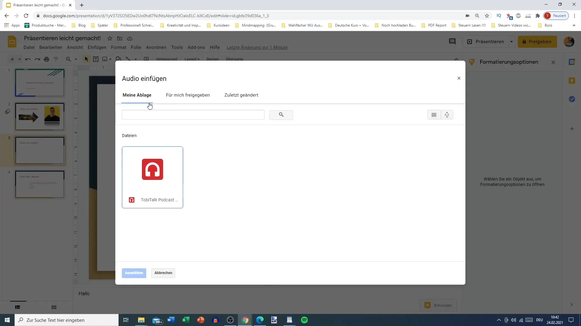 Tagad jums tiks piedāvāts izvēlēties audio failu. Lūdzu, ņemiet vērā, ka varat izmantot tikai tos failus, kas atrodas jūsu Google diskā. Tas nozīmē, ka nav iespējams izmantot audio ierakstus, kas atrodas lokāli datorā. Meklējiet vēlamo audio failu savā Google diskā.
