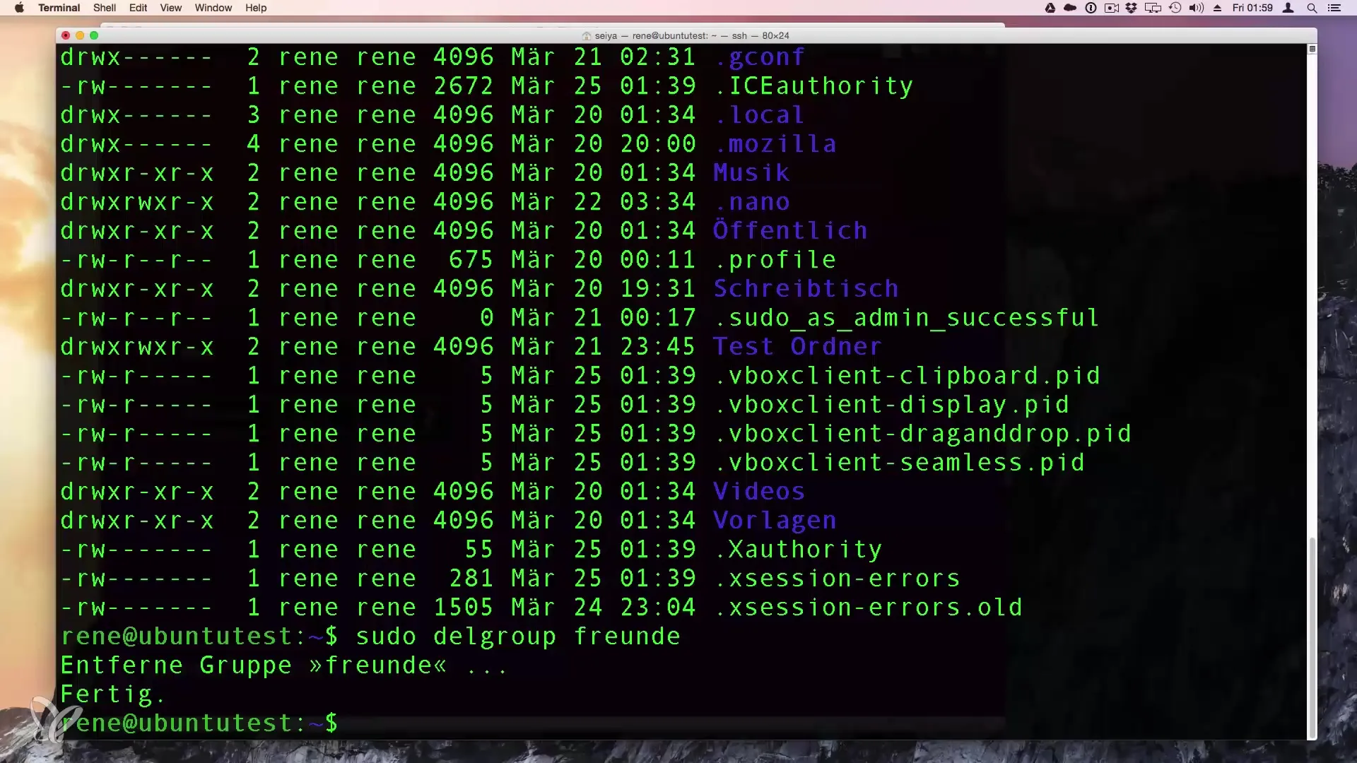Hetzelfde principe geldt voor de groep "Vrienden". Je kunt de gebruiker met de volgende opdracht verwijderen: