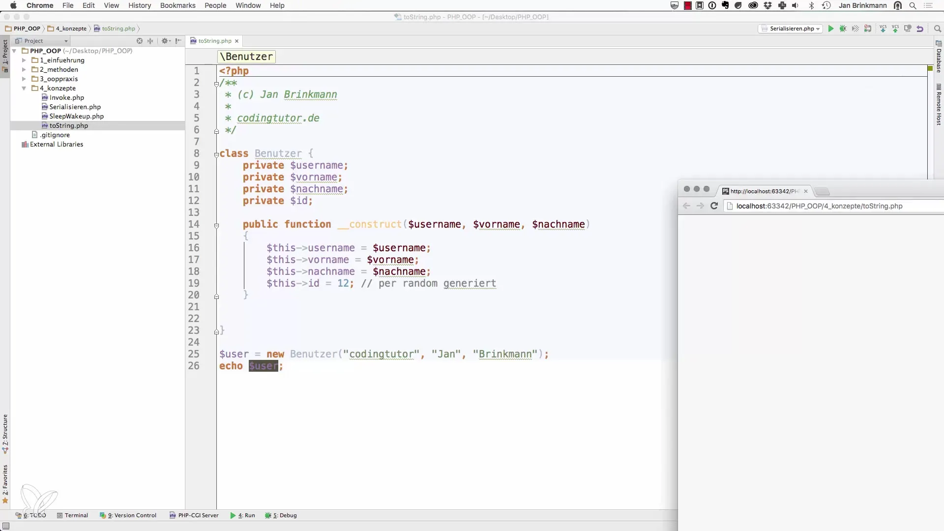 - De __toString-methode maakt de aangepaste weergave van een object als string mogelijk.