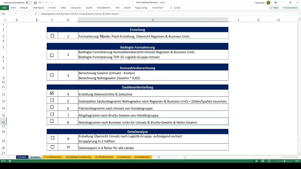 Om succesvol een pivot-tabel te maken en te formatteren, moet je eerst je ruwe gegevens als tabel formatteren. Vervolgens kun je de pivot-tabel maken, de gewenste gegevens naar de juiste structuur slepen en uiteindelijk de weergave aanpassen om een overzichtelijke analyse te krijgen.
