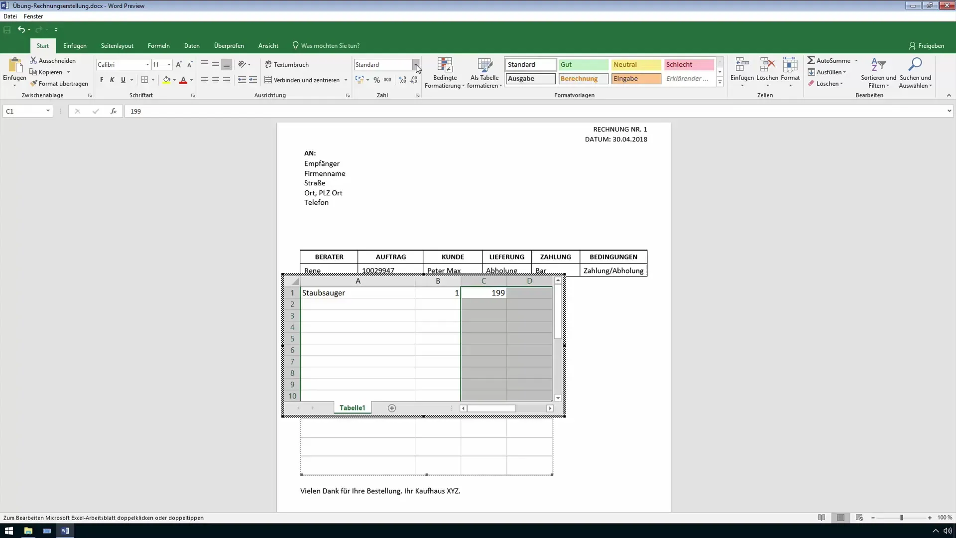 Excel en Word zijn krachtige tools die alomtegenwoordig zijn in de kantoorwereld. Als je in staat bent om deze twee programma's effectief te combineren, kun je je documentatie aanzienlijk verbeteren. Het invoegen van Excel-tabellen in Word-documenten stelt je in staat om krachtige berekeningen en data-analyses te gebruiken terwijl je tegelijkertijd aantrekkelijke rapporten en facturen maakt. In deze handleiding laten we je zien hoe je Excel-tabellen in een Word-document invoegt om het maken van facturen te vergemakkelijken.