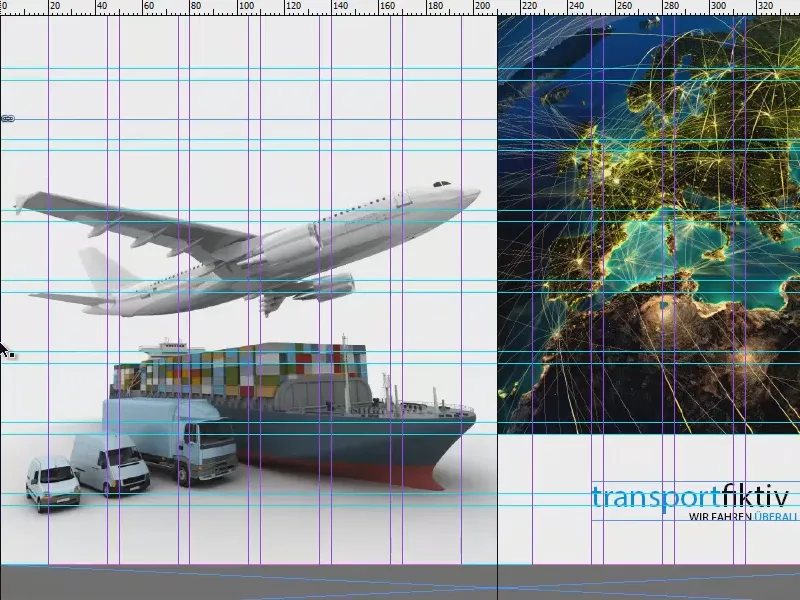 In dit geval houd ik me niet aan het raster, want het gaat ook een beetje om de esthetiek: Omdat de eerste regel met "transportfiktiv GmbH" niet bovenaan eindigt op de basislijn, maar iets lager, zal ik ook het kader voor de kaart ongeveer daarop afstemmen.