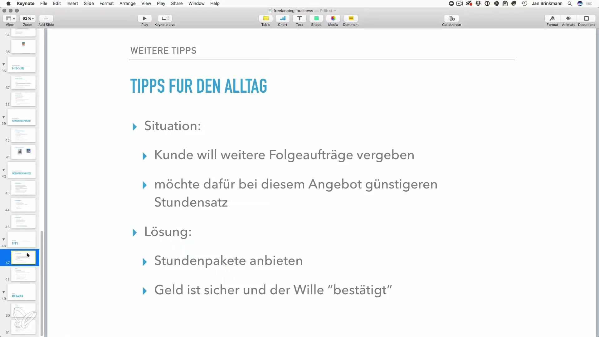 Een slimme oplossing is om je potentiële klanten een urenpakket aan te bieden. Als iemand voor 500 € alleen een klein project wil uitbesteden, leid dan het gesprek zo, dat je hem een aantrekkelijk urenpakket van bijvoorbeeld 10 uur aanbiedt.