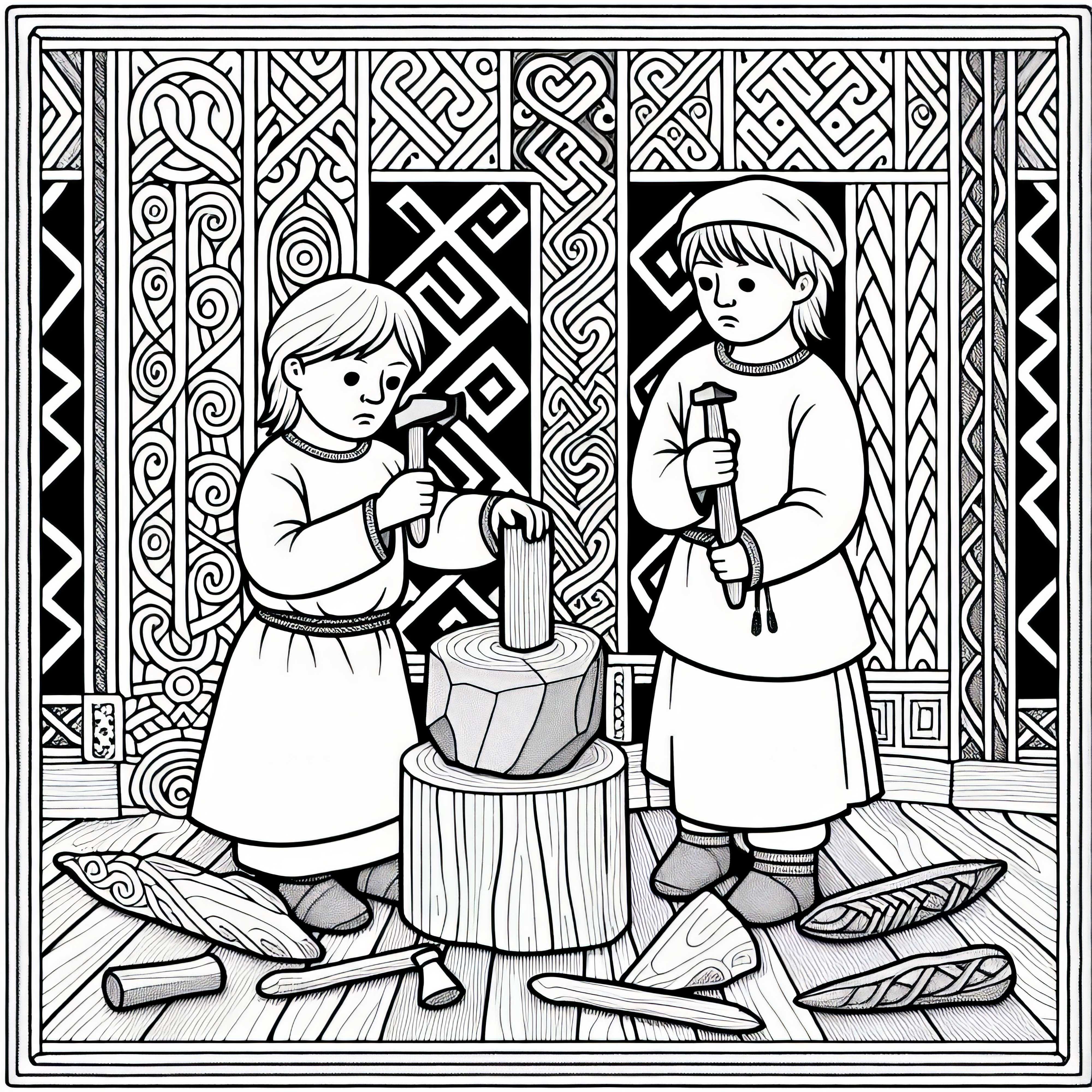 To barn hjelper til med å male korn Fargeleggingsbilde av germanere gratis