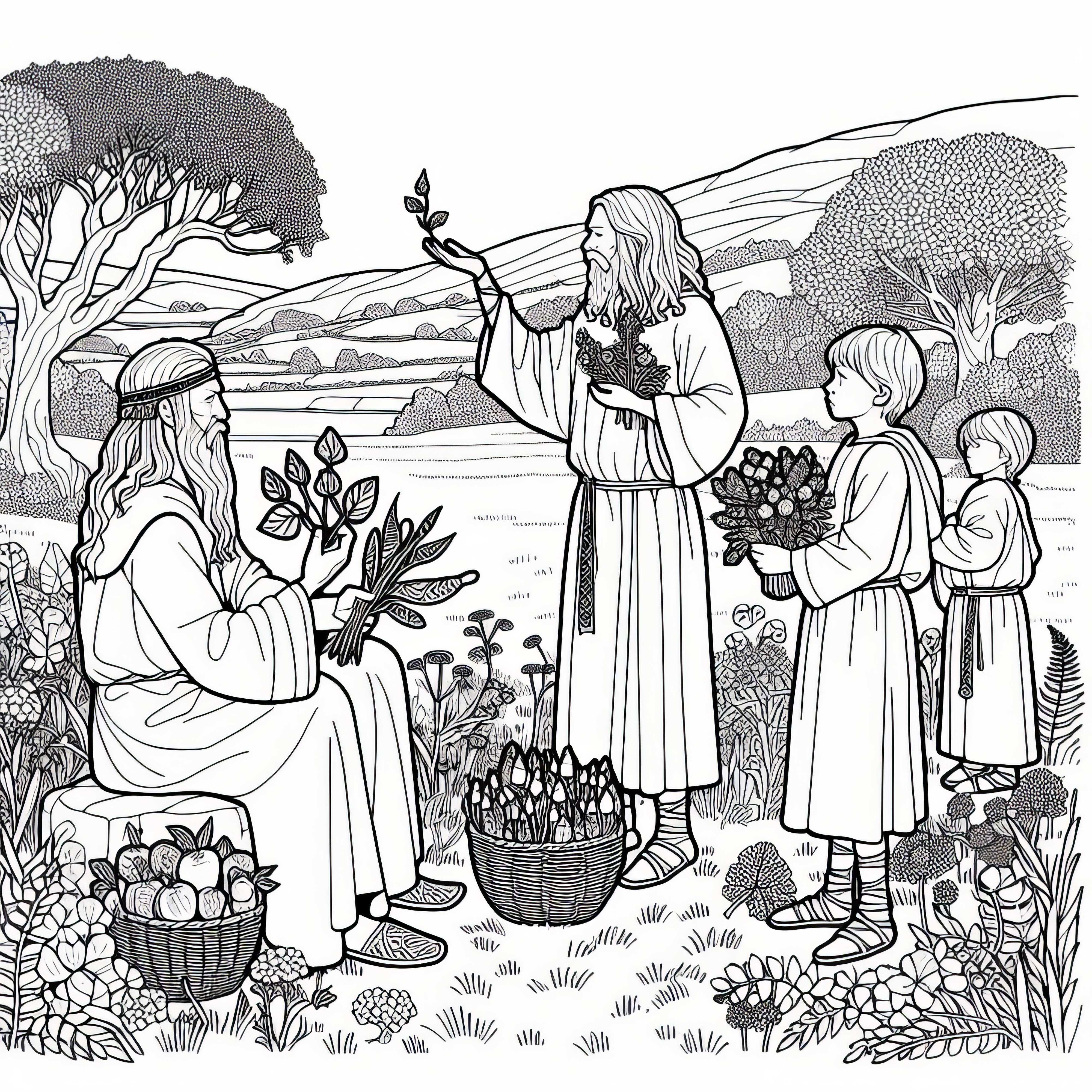 Høsttakkefest: Barn bringer kornkorn og danser i ring – Gratis fargeleggingsbilde av kelterne