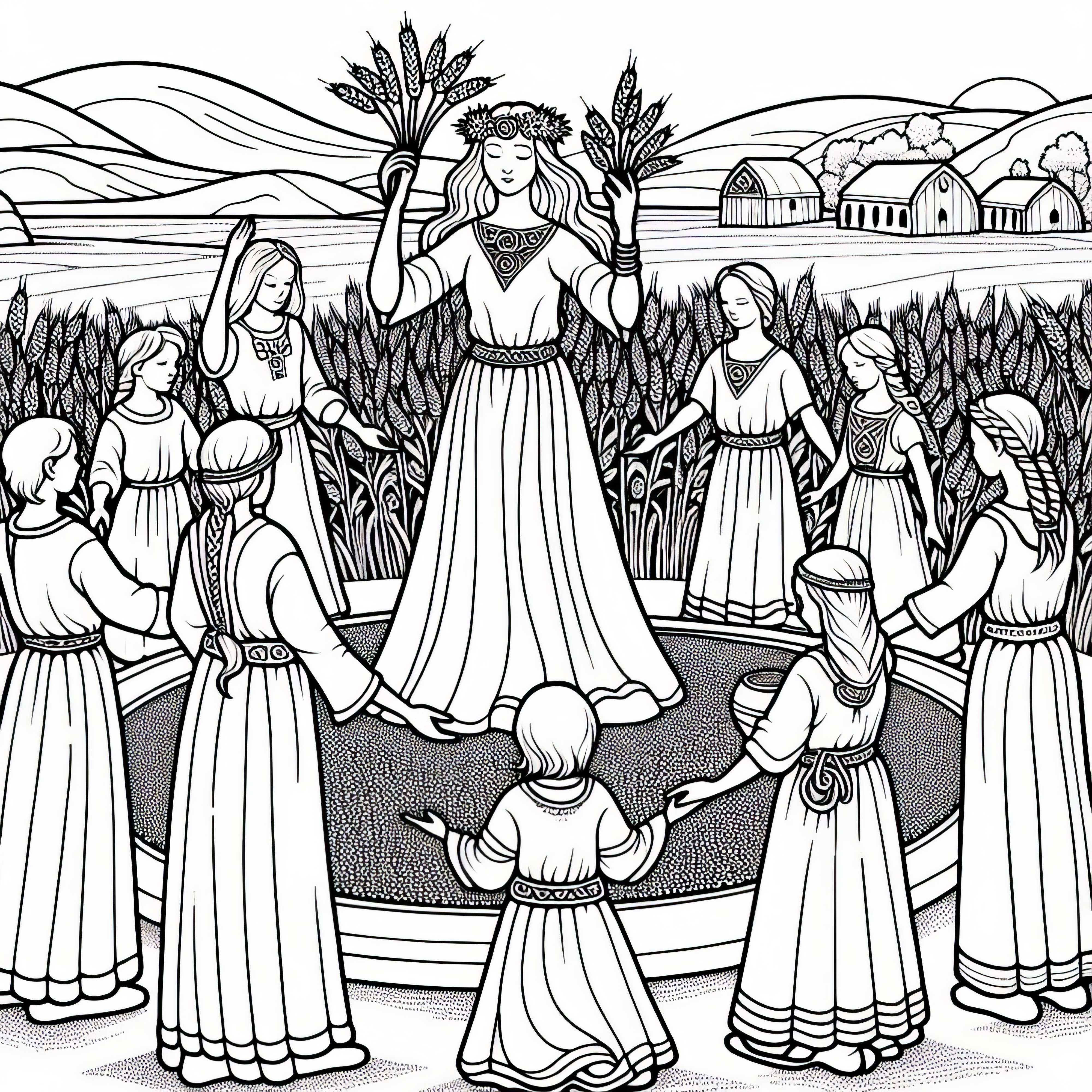 Folk bærer ofringer til en lysning – Malebilde av keltisk kunst gratis