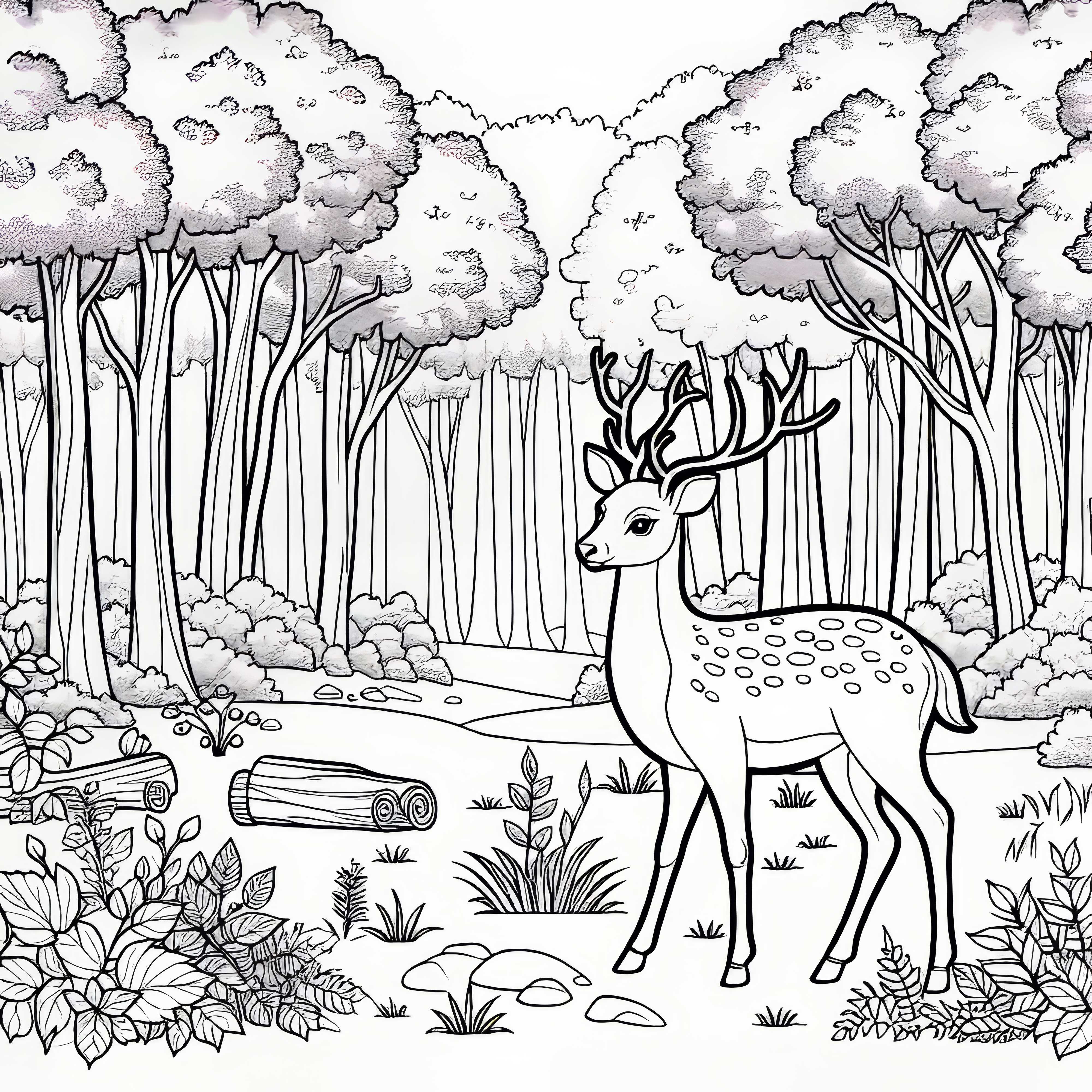 Las z liściastymi drzewami: Pobierz darmowy szablon do kolorowania