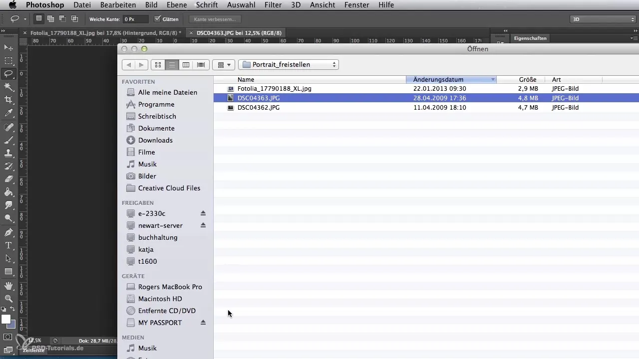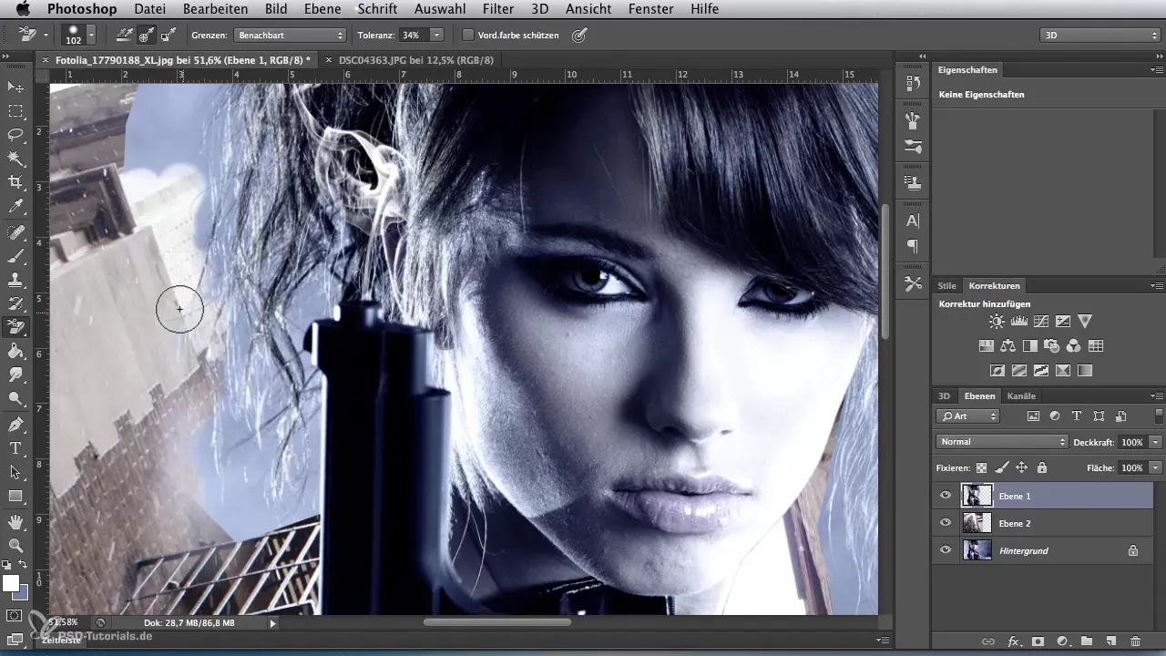 Na początek powinieneś załadować obraz, który chcesz edytować, do swojego oprogramowania do edycji zdjęć. Wybierając portret, ważne jest, aby oświetlenie było dobre, a kontury wyraźnie widoczne. Teraz jesteś gotowy, aby rozpocząć grubą selekcję. Do tego doskonale nadaje się narzędzie wielokątne laso. Za pomocą tego narzędzia najpierw obręczasz krawędzie portretu, ponieważ szczególnie na prostych krawędziach, takich jak skórzana kurtka czy broń, jest to łatwe w obsłudze.