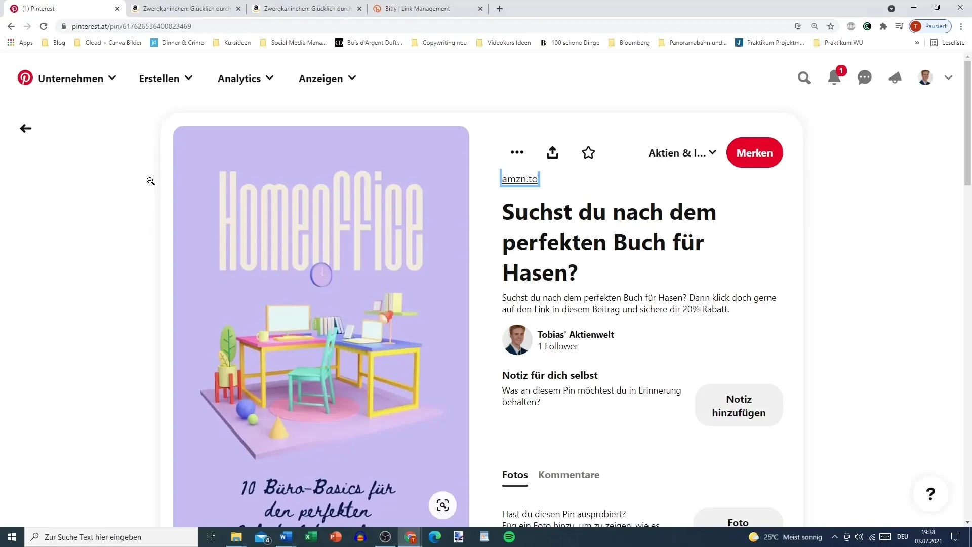 Po utworzeniu pina dodaj odpowiedni obraz. Upewnij się, że rozmiary obrazu spełniają wymagania Pinterest. Możesz na przykład wybrać obraz pasujący do Twojego produktu afiliacyjnego. W naszym przykładzie wybieramy obraz książki o królikach karłowych, będącej wykorzystywaną jako link afiliacyjny.