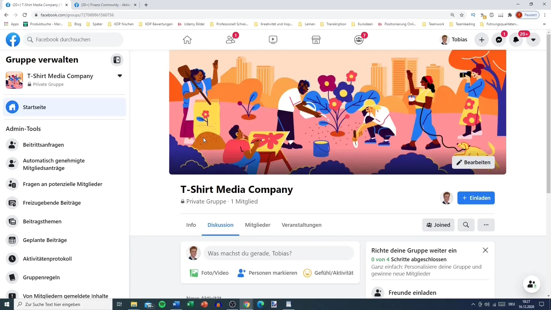 Pierwszym ważnym krokiem jest wybór nazwy grupy. Wybierz coś zapadającego w pamięć, jak "T-Shirt Media Company". Możesz postawić na słowa kluczowe, aby poprawić jej widoczność. Przykładowo "Finanzcommunity Aktien Dividende Börse und Finanzen". Ważne jest tu, aby zintegrować cztery słowa kluczowe, które odzwierciedlają tematykę twojej grupy.