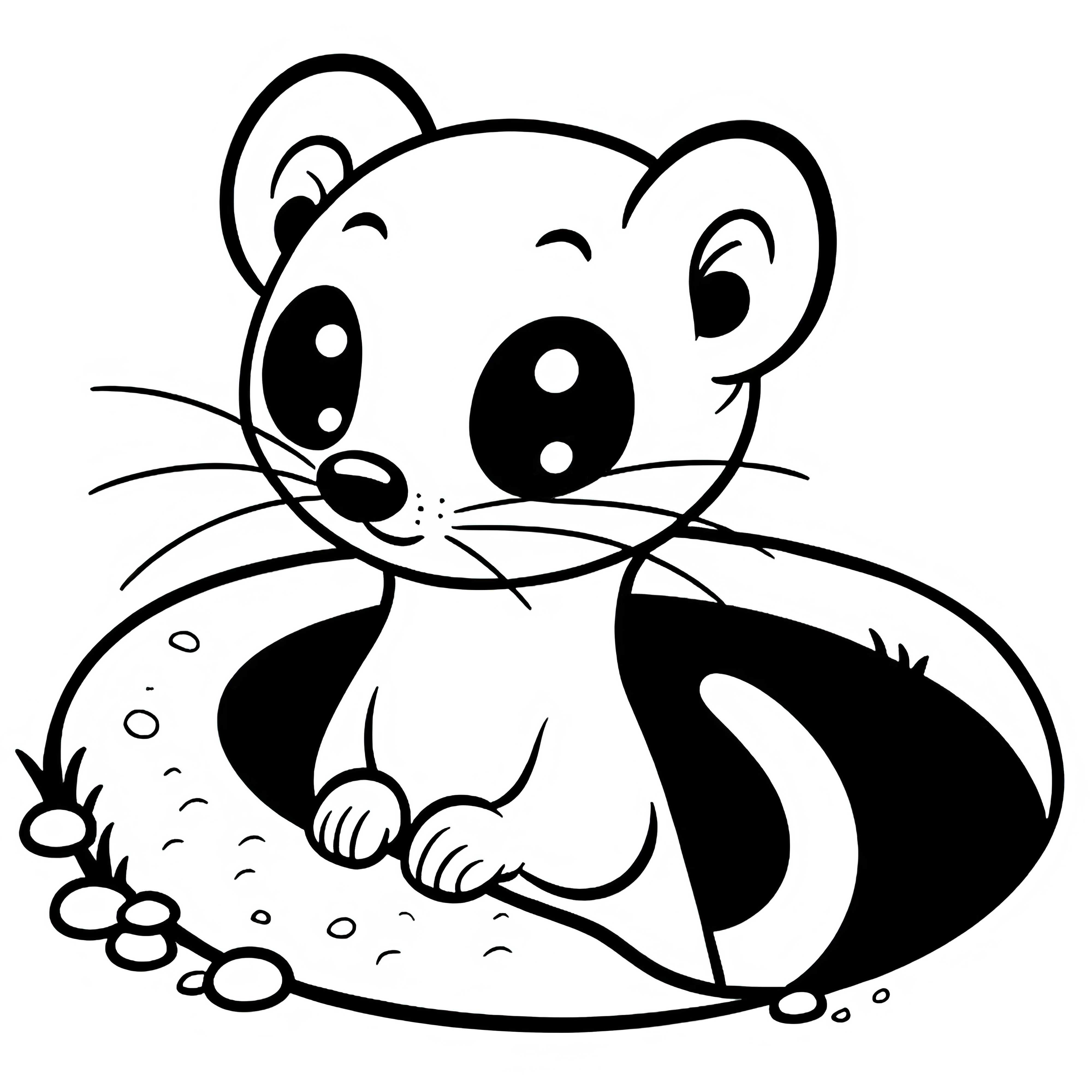 O furão carrega um pequeno rato na boca – Desenho para colorir grátis