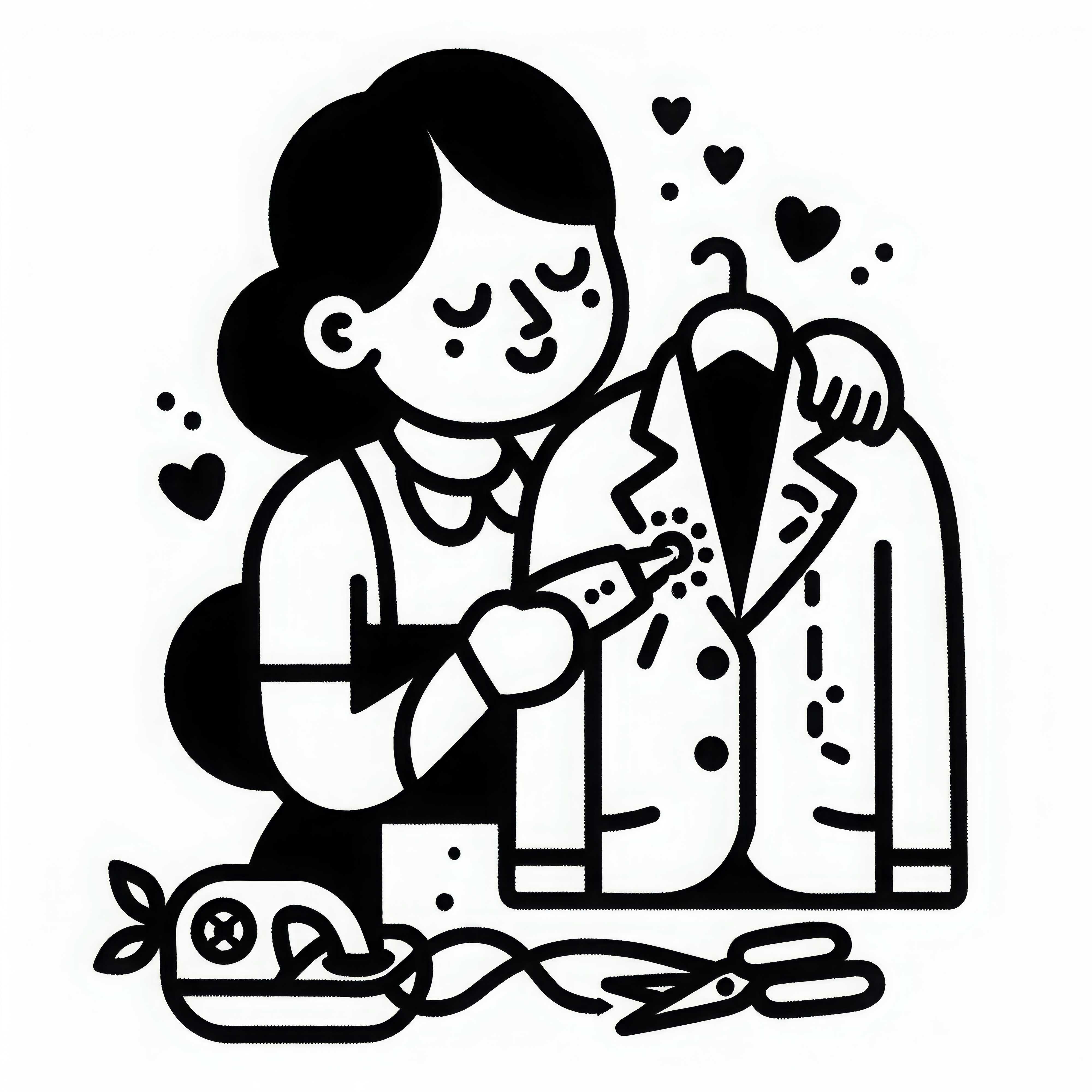 Schneider costura botões em uma camisa - Imagem para colorir gratuita