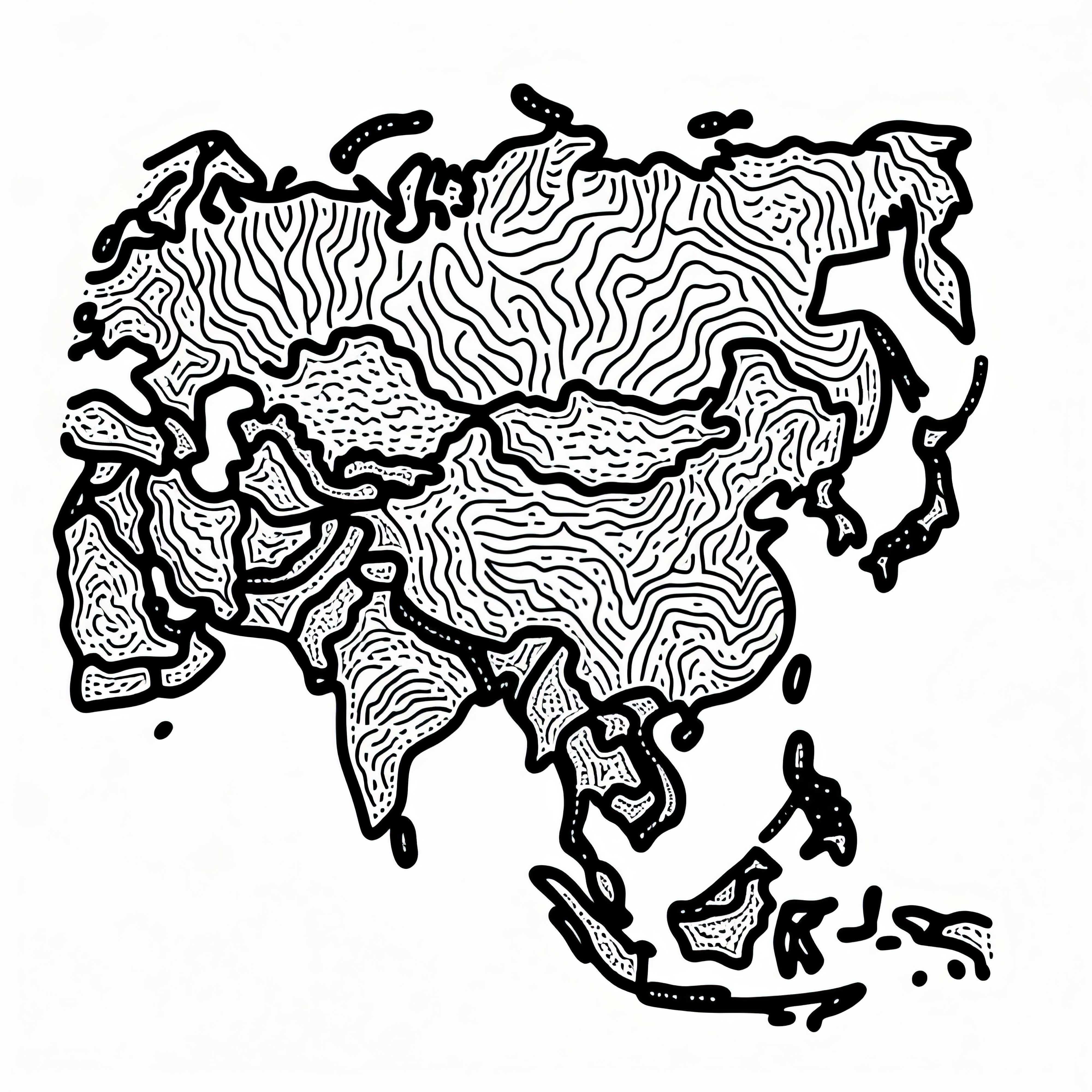 Estepes com camelos e iurtas – Desenho para colorir Ásia grátis