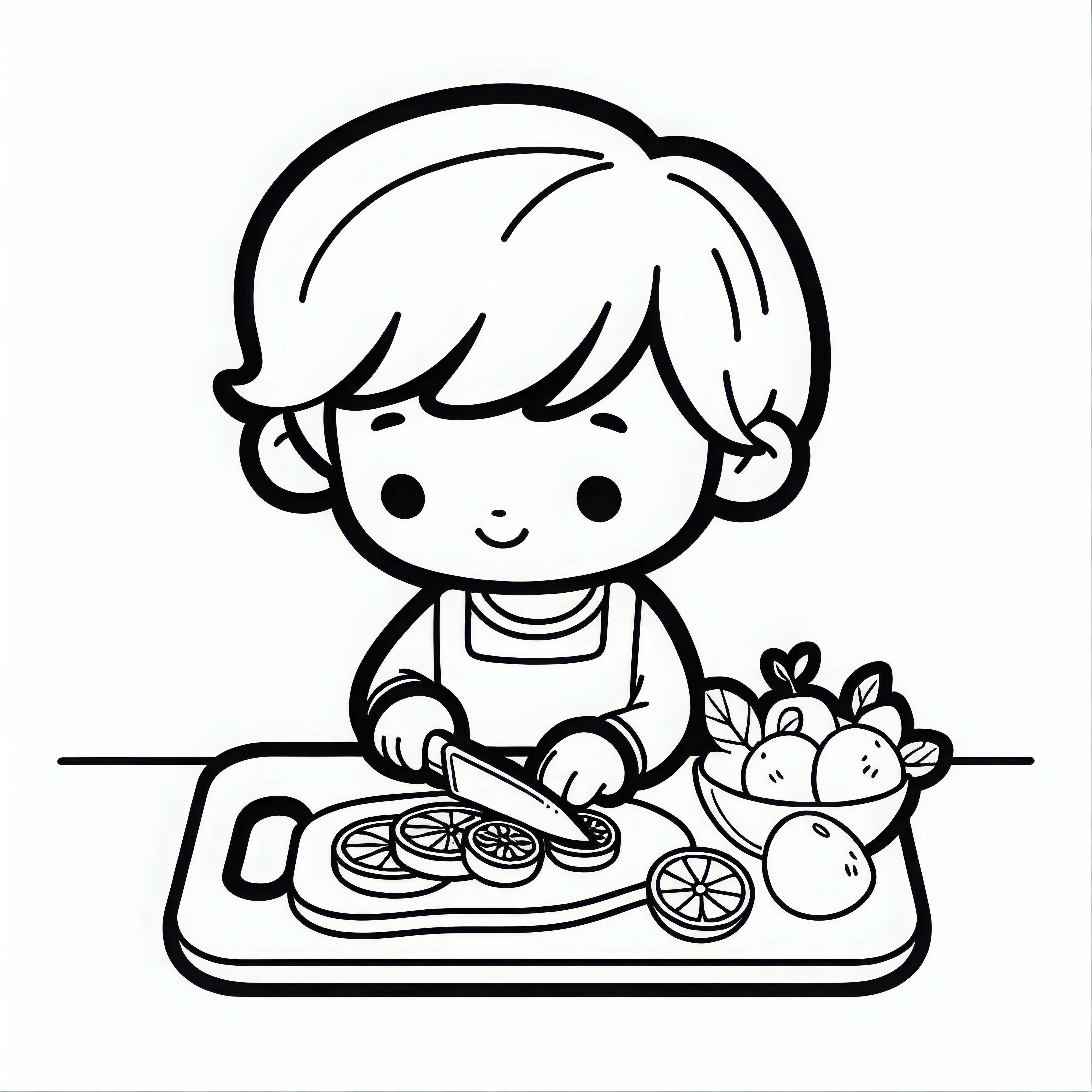 Criança espalha manteiga no pão - Desenho para colorir para download gratuito