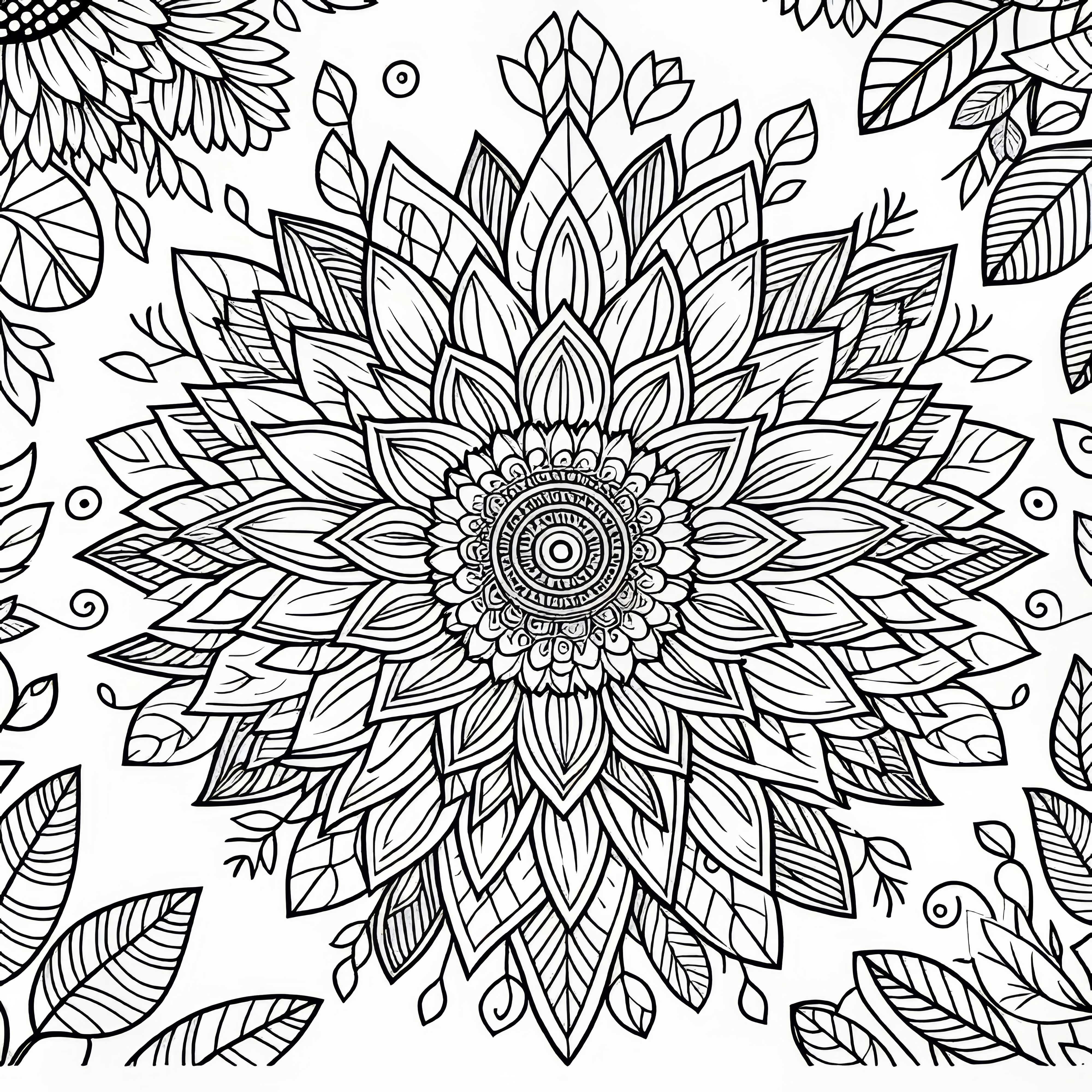 Mandala redondo feito de pequenas flores - Desenho para colorir grátis
