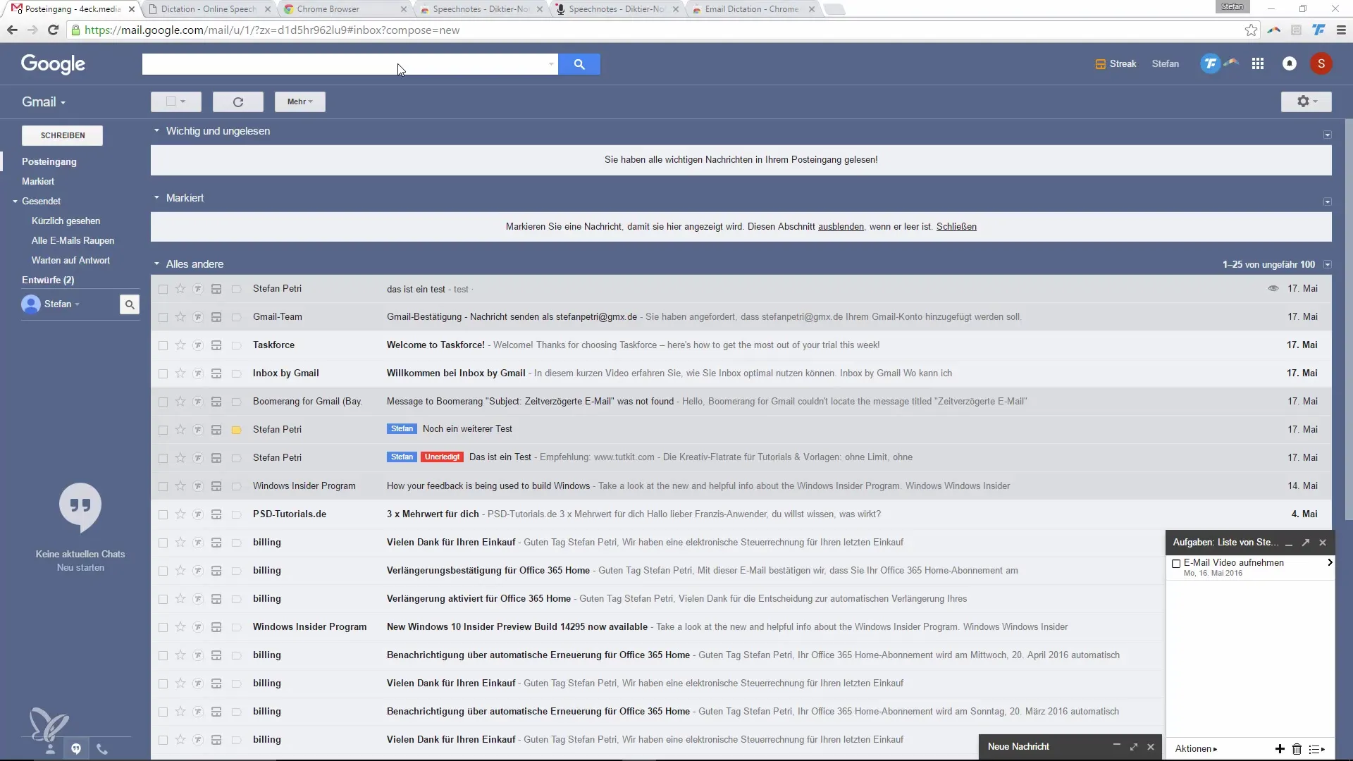 Pode ser que você precise verificar a configuração do idioma novamente após reiniciar o navegador, para garantir que ele permaneça corretamente em Alemão. Teste a funcionalidade ditando diferentes e-mails e veja como o sistema se comporta.