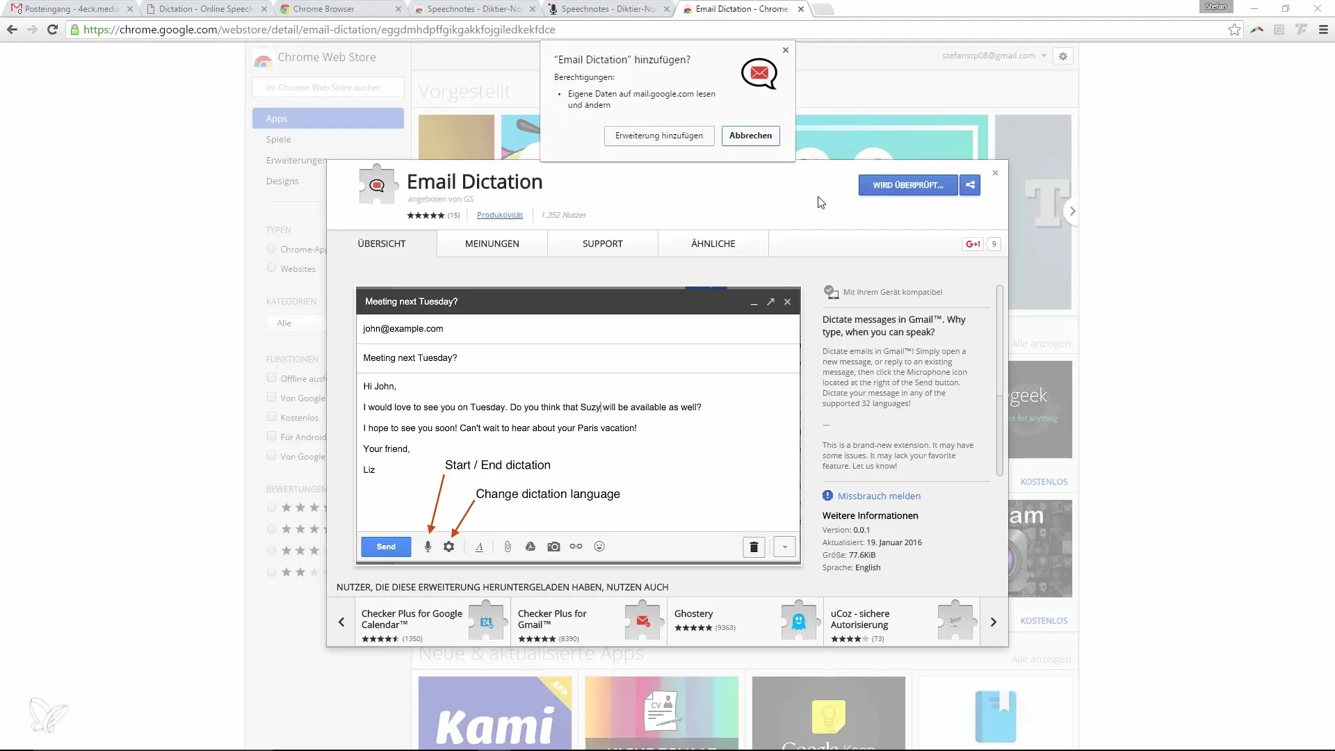 Passo 4: Instalar a extensão Email Dictation do Chrome