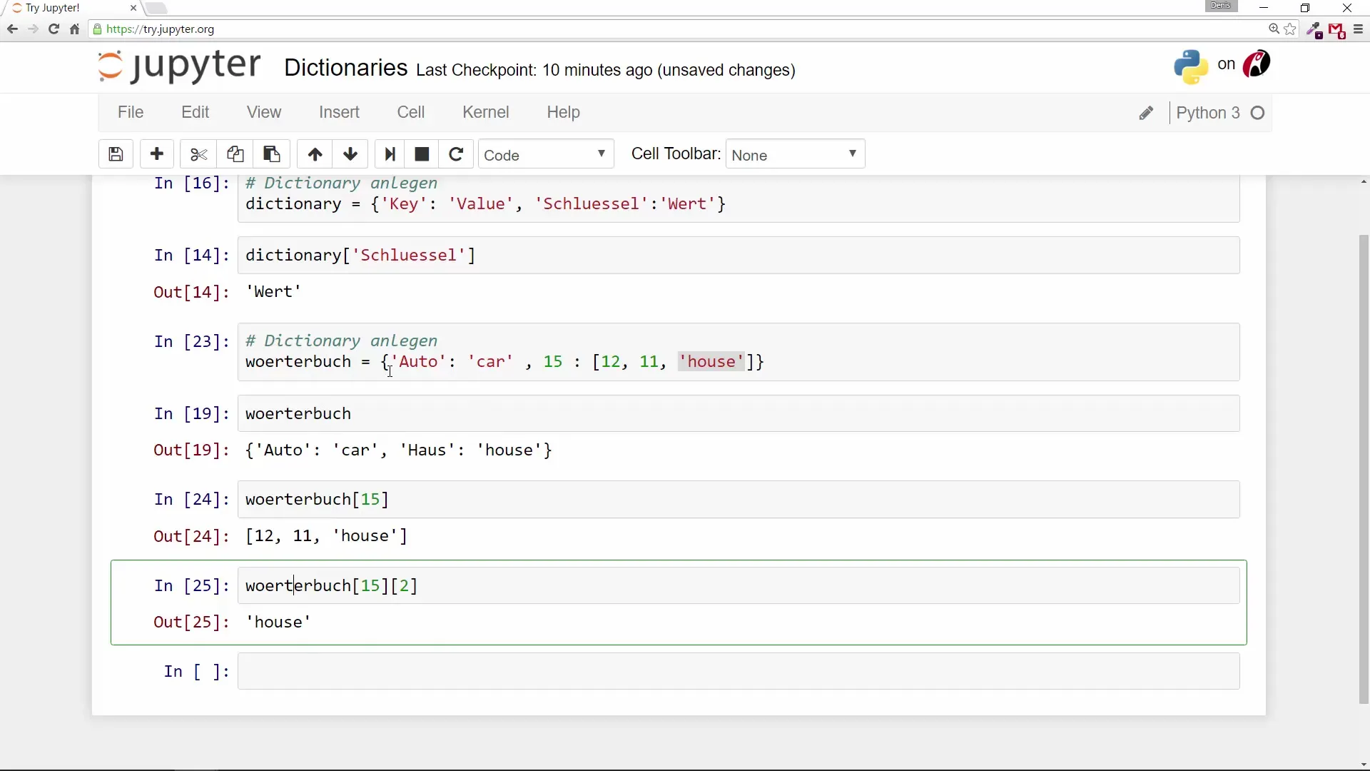 Agora você pode preencher o conteúdo do dicionário vazio gradualmente.