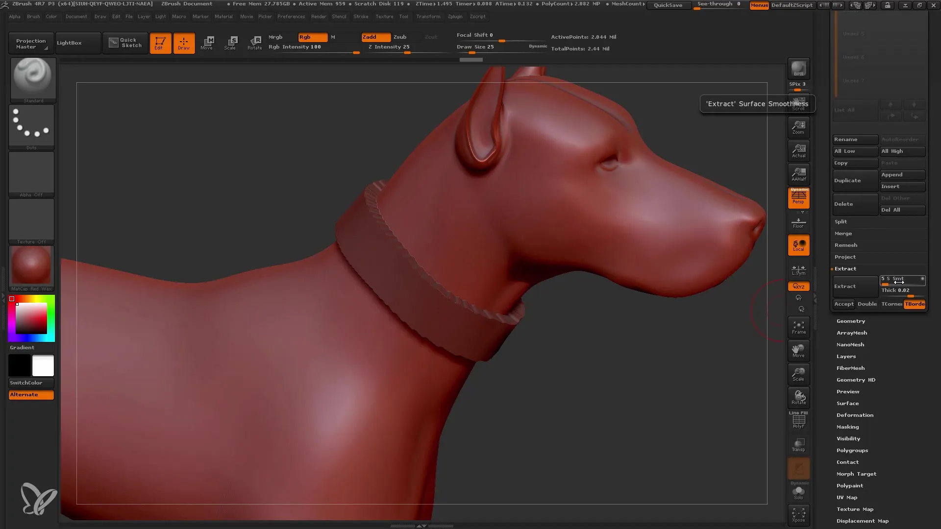 O que é a função Extract no ZBrush? Permite-lhe extrair áreas mascaradas de uma malha para uma sub-ferramenta separada.