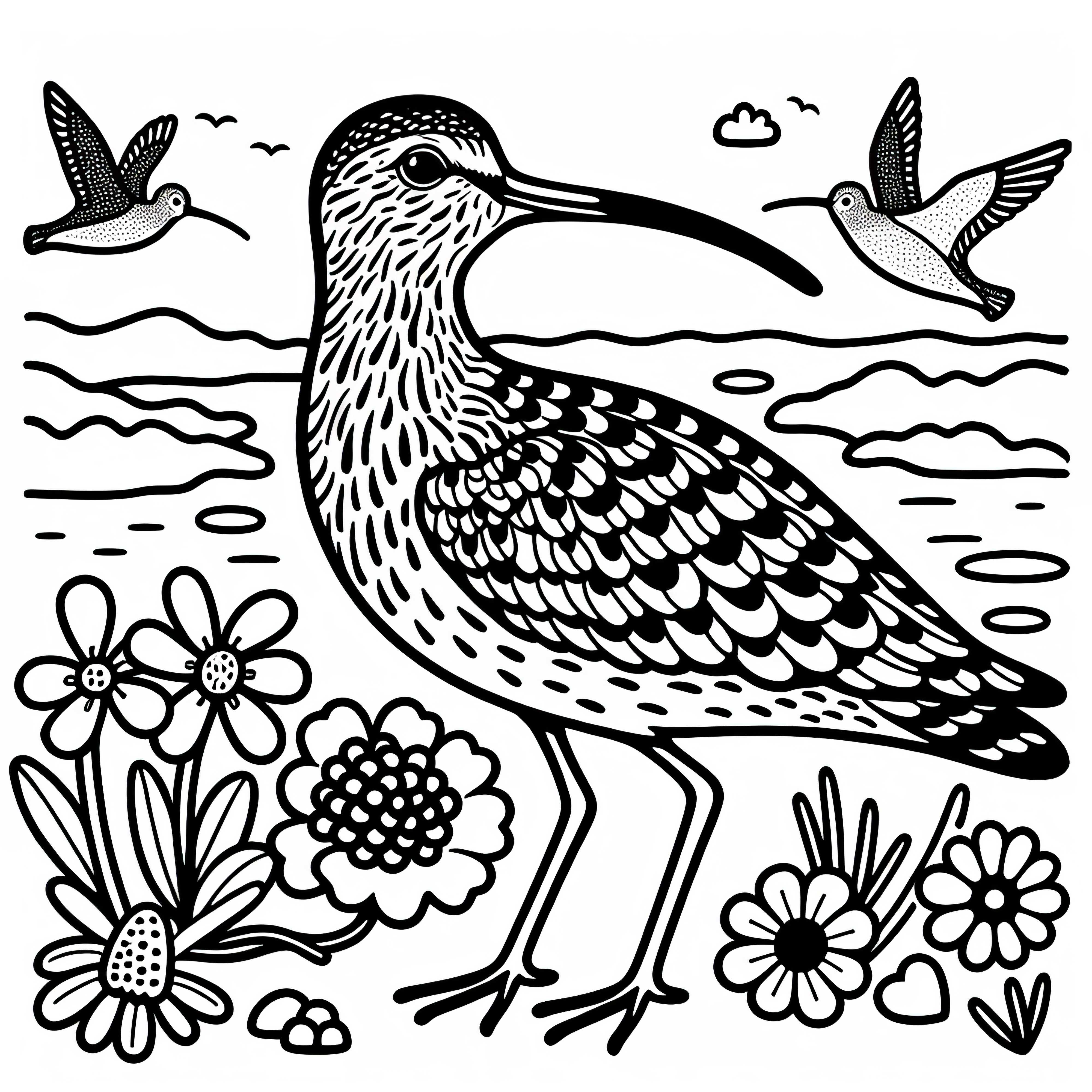 Desen de colorat cu un mare Brachvogel - descarcă imaginea acum și dă-i viață!