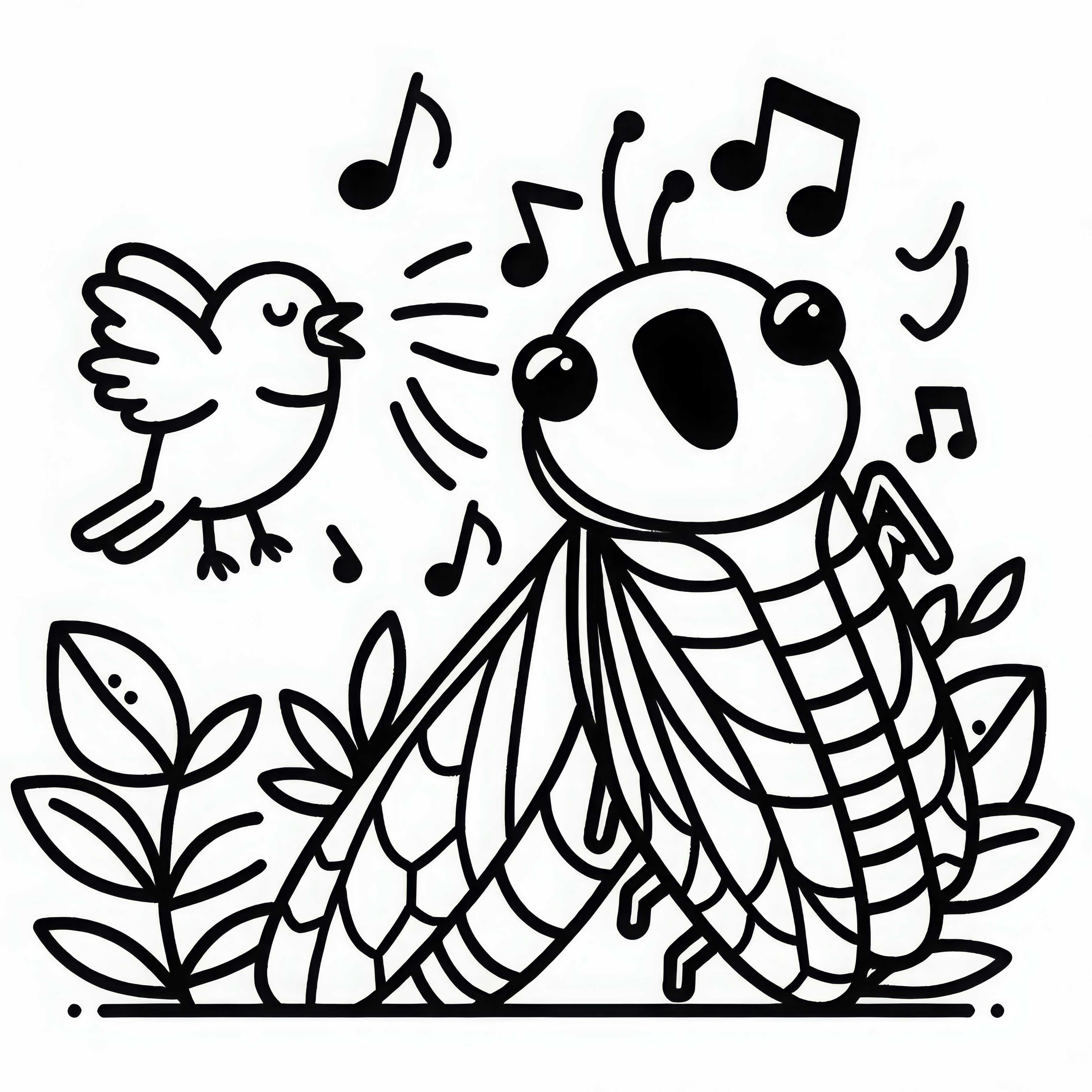 Ciclida cântă prin aer – imagine de colorat gratuit