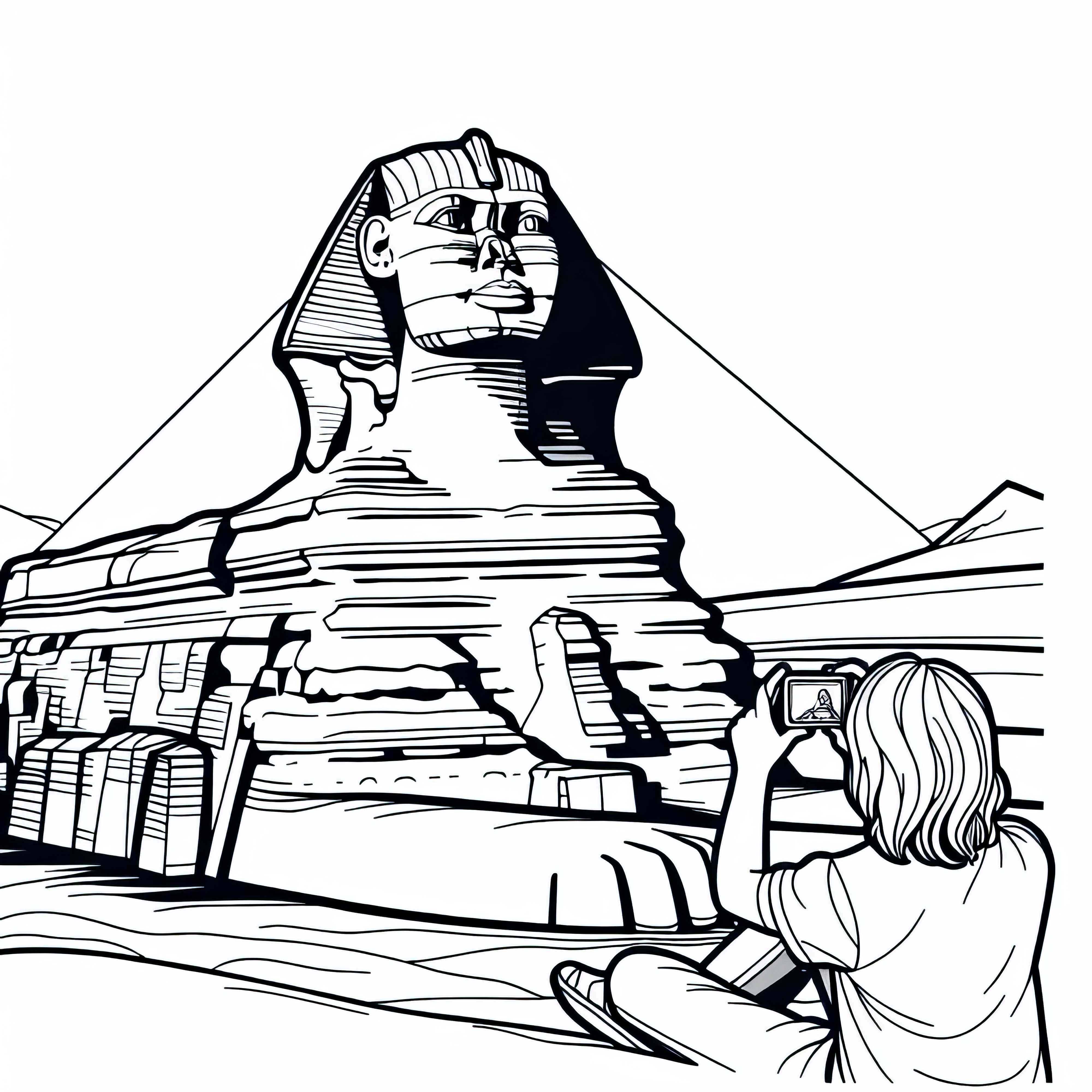 Pagină de colorat: Sfinga din Giza cu copil care face o fotografie