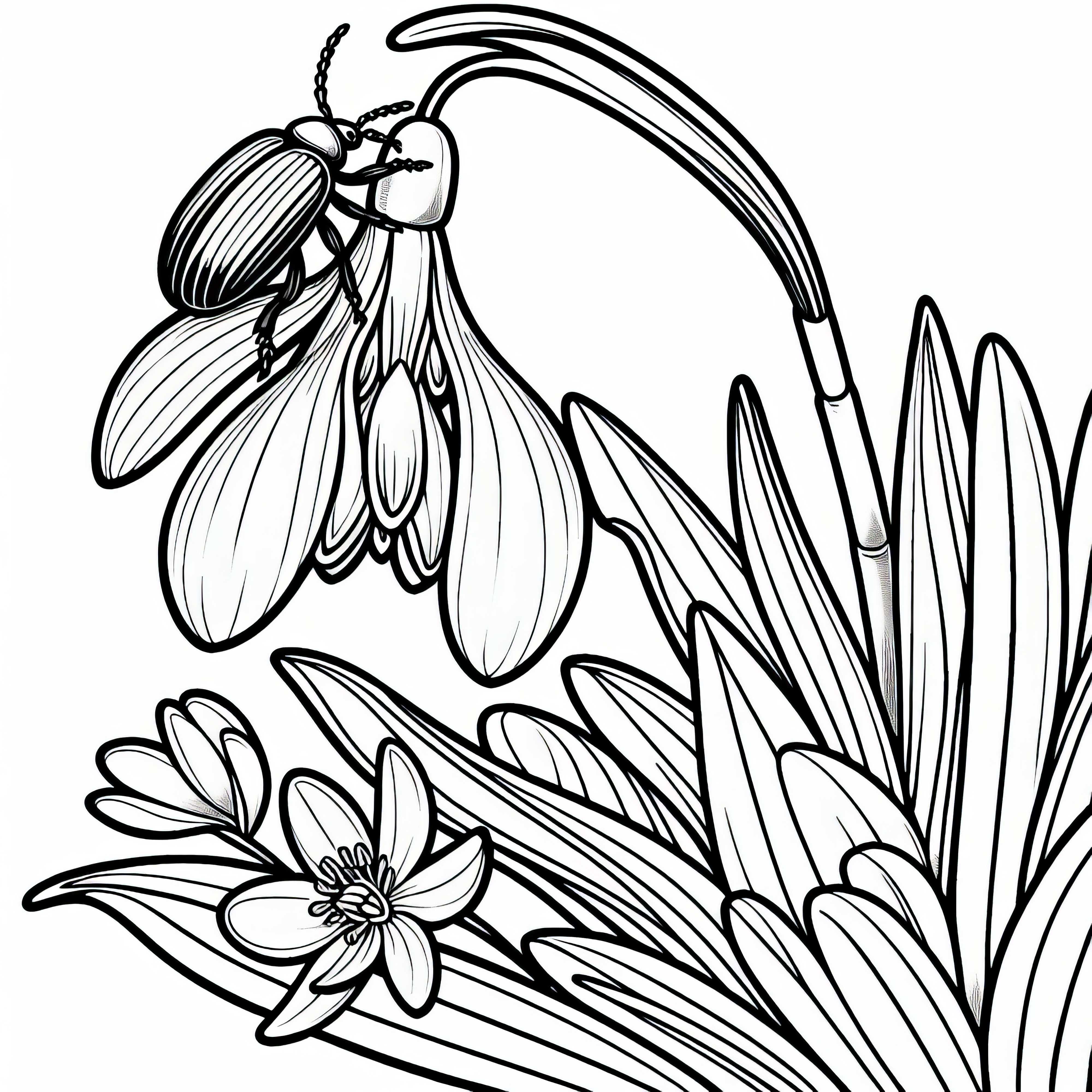 În această imagine de colorat, un gândacse legănă peste florile delicate ale unui ghiocei. Imaginea este excelentă pentru a-ți exprima latura creativă, fie că o tipărești, fie că o colorezi online. Este o modalitate minunată de a apropia atât copiii, cât și adulții de natură și de a o colora. Poți descărca gratuitimaginea de colorat și începe imediat să o personalizezi. Descarcă acum imaginea de colorat sau descoperă posibilitatea de a o colora online!