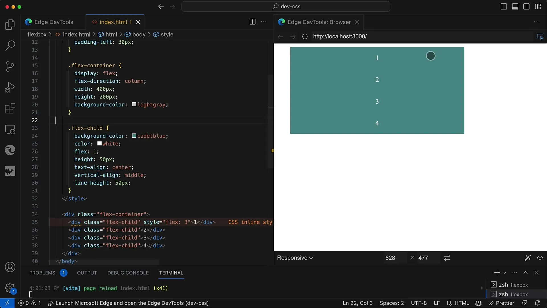 Puteți ajusta ușor proprietățile Flexbox schimbând proprietatea flex-direction. De exemplu, dacă modificați containerul flex de la row la column, logica distribuției rămâne aceeași. Elementele copil vor fi aranjate vertical: