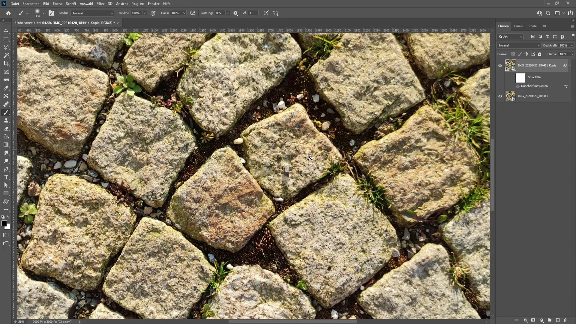 Vei observa că imaginea devine acum mai clară. Fii atent la detalii precum crăpăturile sau mușchiul din imagine - acestea sunt indicii bune despre cum putem să creștem claritatea.
