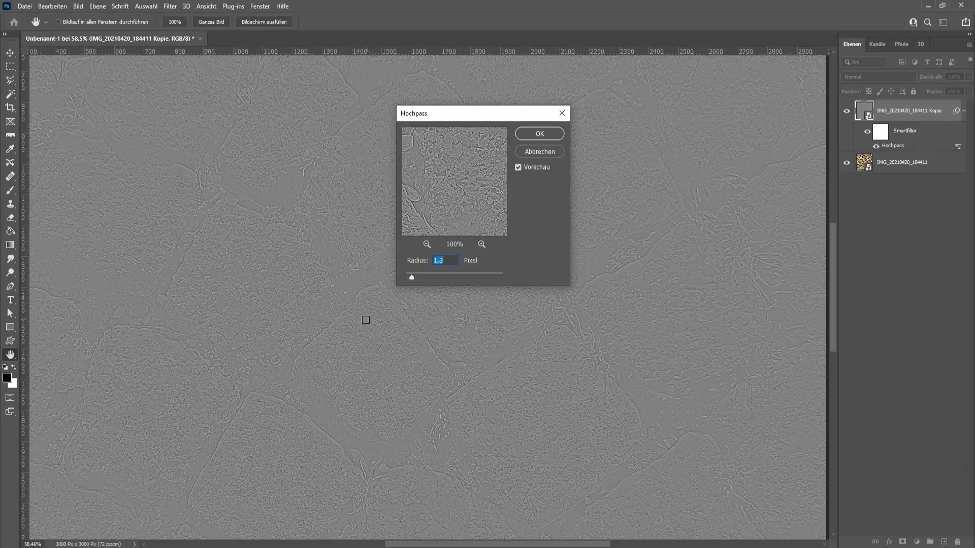 Dacă nu-ți place prima metodă, îți voi arăta acum a doua posibilitate. În primul rând, șterge filtrul inteligent și apoi mergi la „Filtru” și apoi la „Alte filtre” și alege „High Pass” (Hochpass).