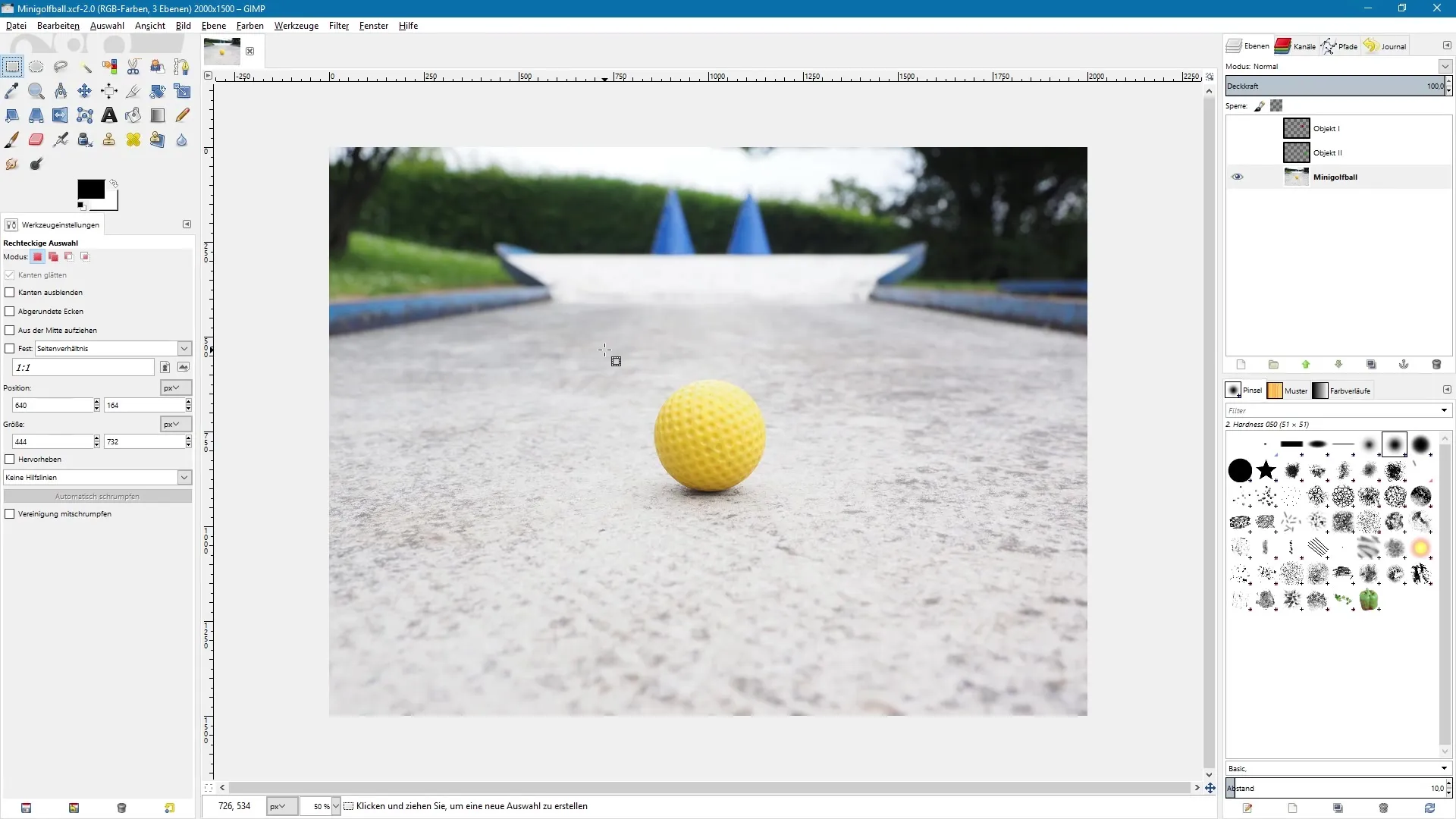 Pe lângă selecția dreptunghiulară, poți folosi și unelta de selecție eliptică. Alege-o și trage un cerc. De asemenea, poți utiliza tasta Shift pentru a crea un pătrat perfect sau tasta Strg pentru a trasa din mijloc.