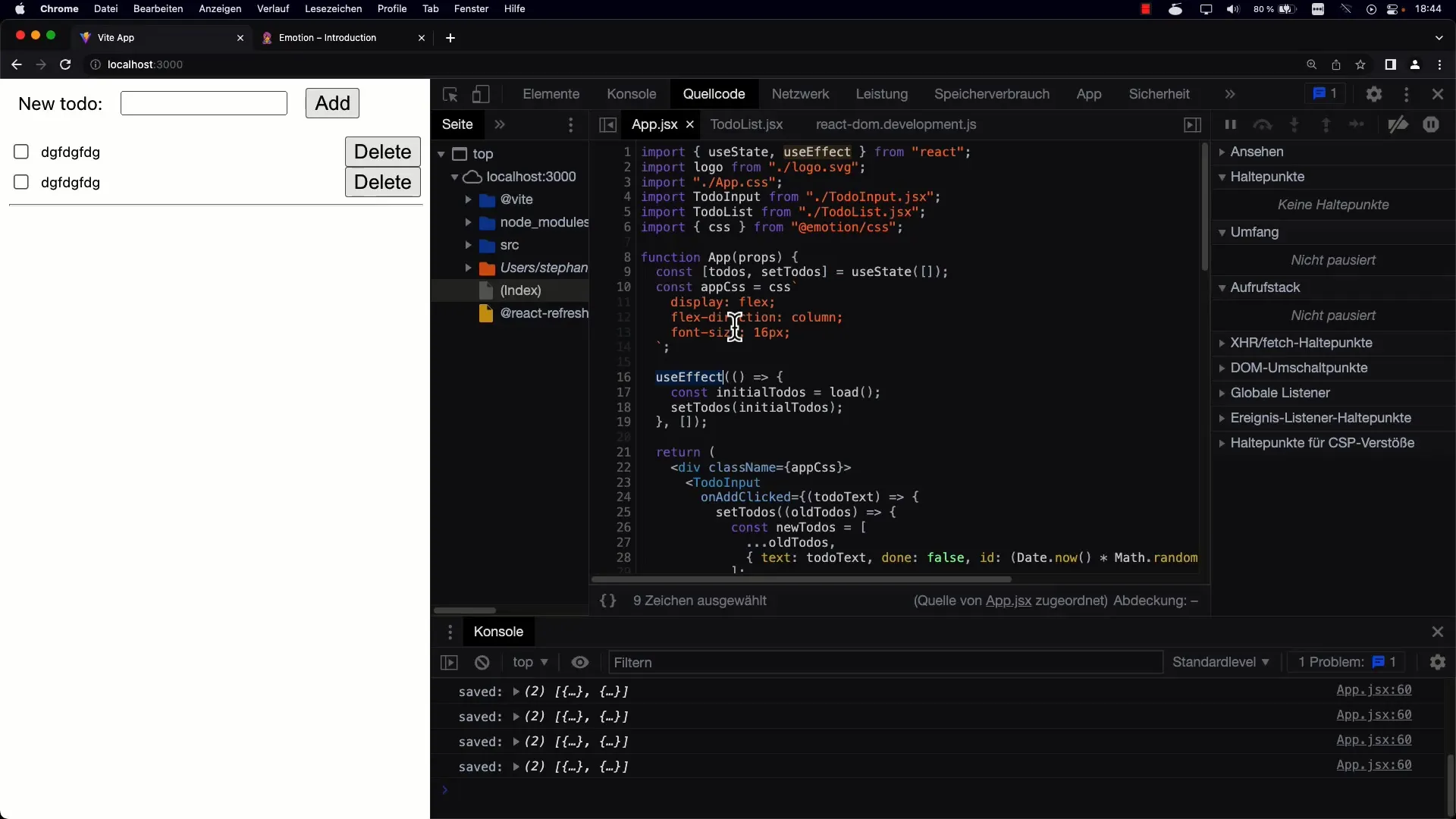 Primul lucru pe care ar trebui să-l faci este să adaugi o ieșire simplă în componenta ta folosind useEffect. Poți realiza acest lucru adăugând o funcție la Hook, care să fie apelată în timpul randării.