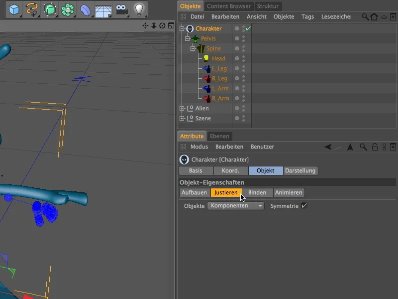 Pentru ca ajustarea componentelor să se desfășoare cât mai clar posibil, obiectul de caracter ne prezintă componentele sub formă de mici sfere. Dacă plasați cursorul mouse-ului peste unul dintre elemente, vi se afișează chiar și numele acestora.