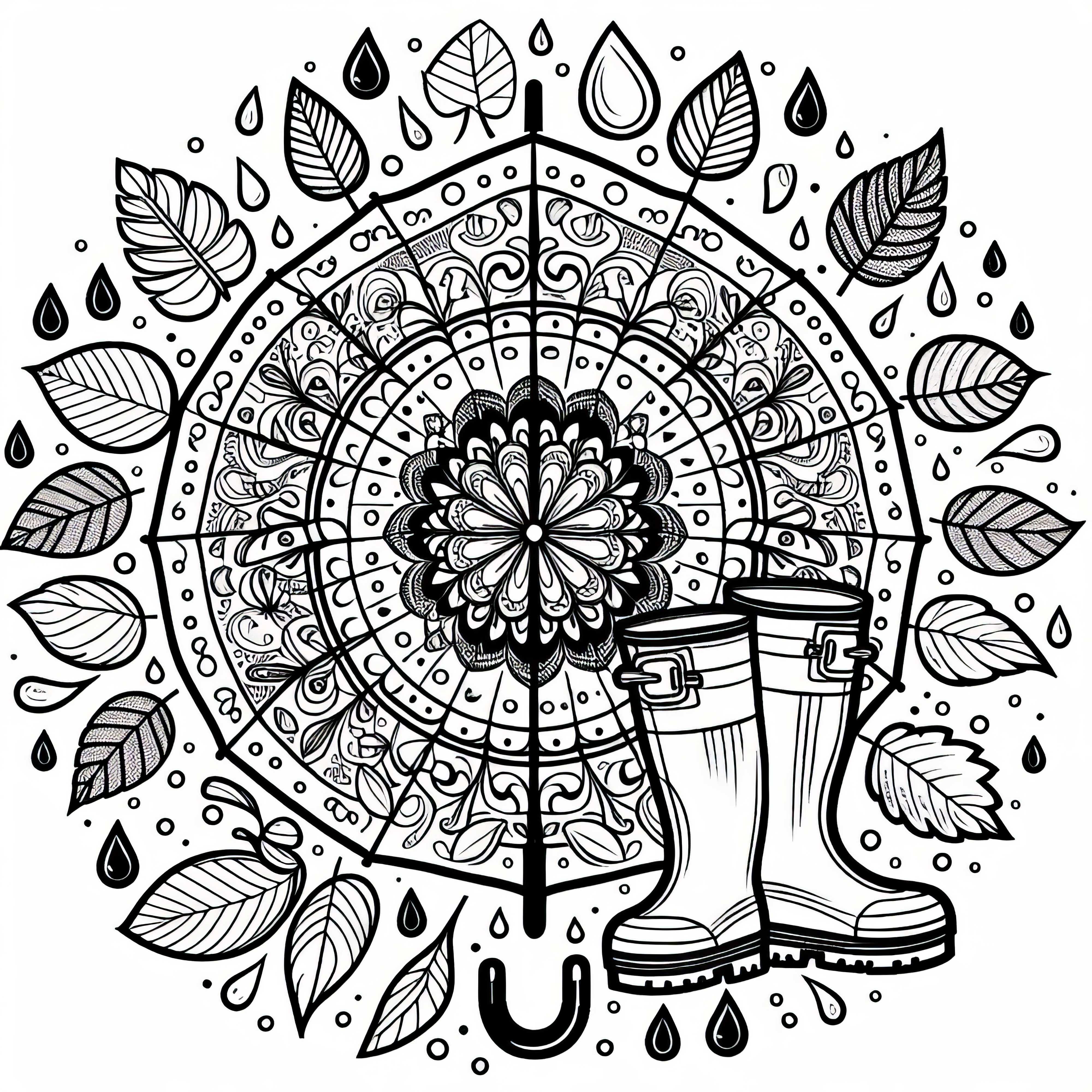 Рисунок для раскрашивания "Дождевое мандала" для осени – бесплатная загрузка