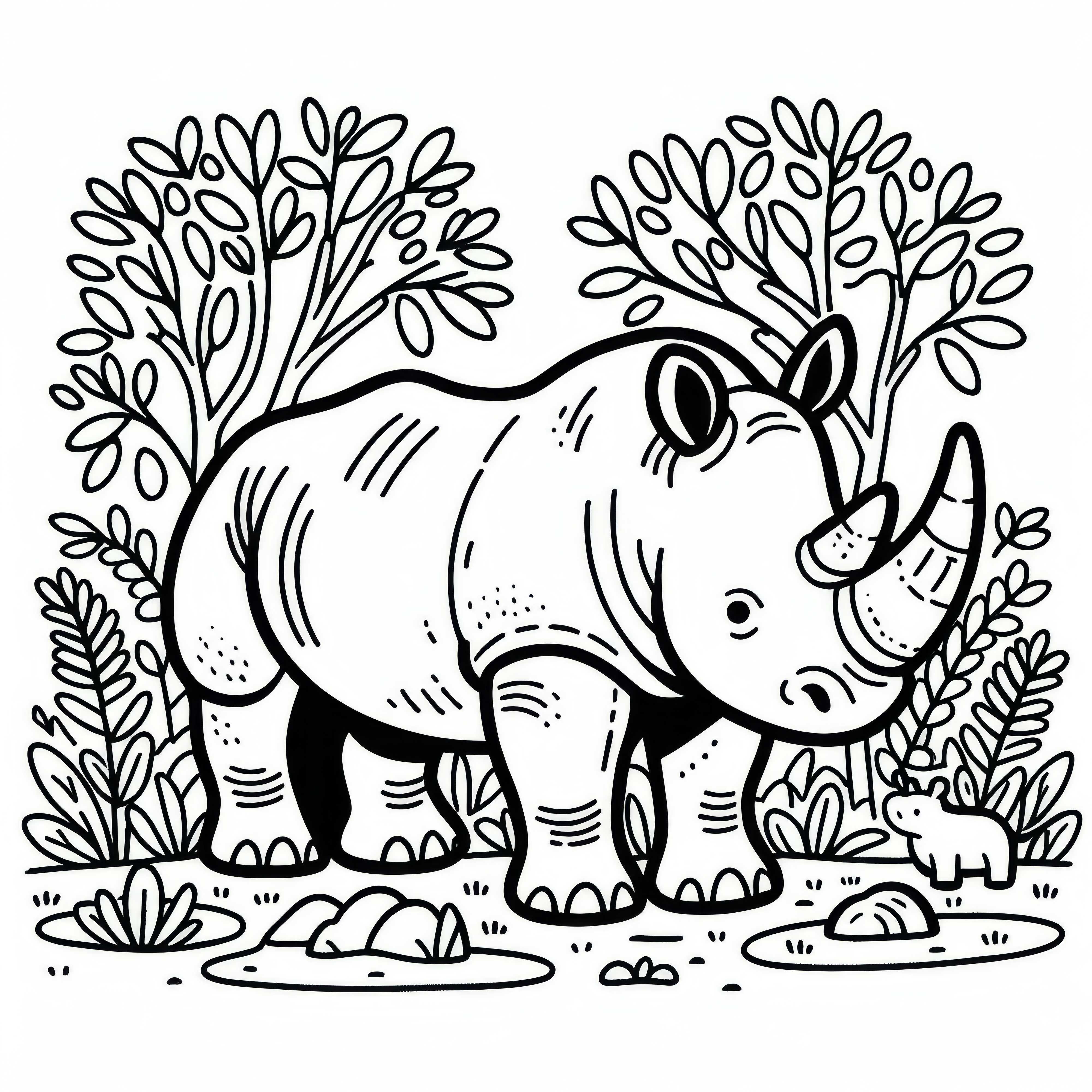 Малыш носорога остается рядом со своей матерью – Бесплатная раскраска