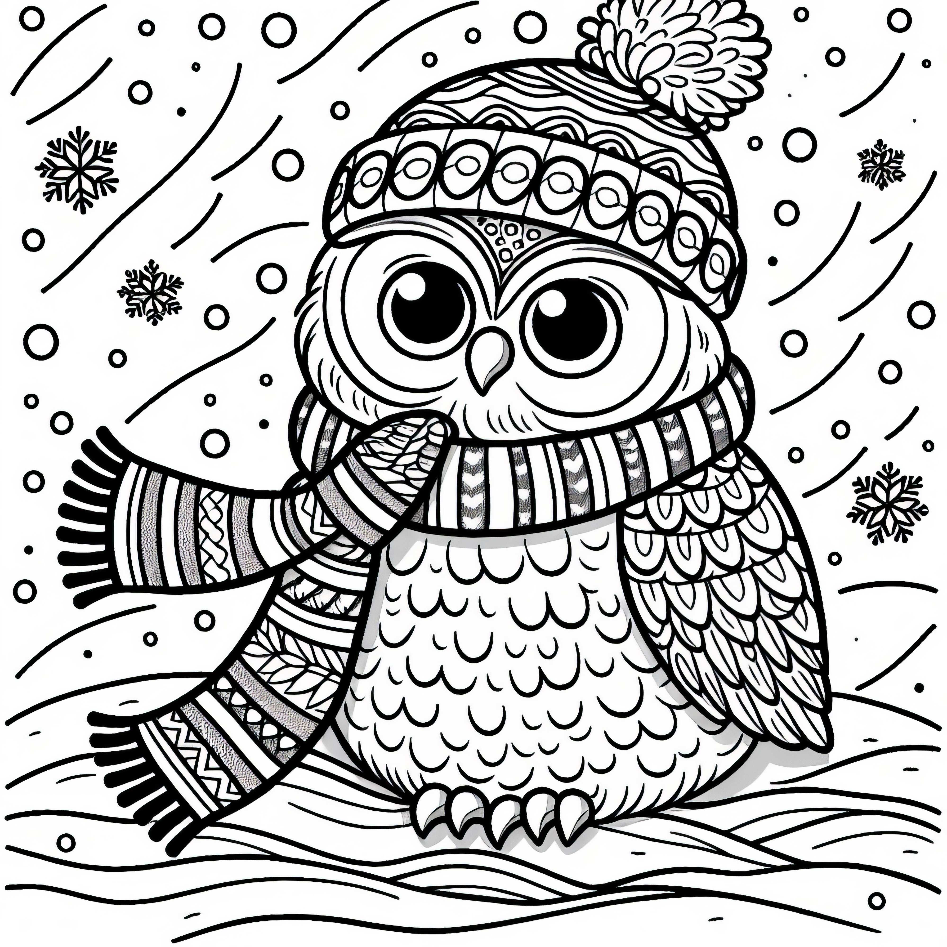 Еж с шарфом в заснеженном саду – бесплатная раскраска