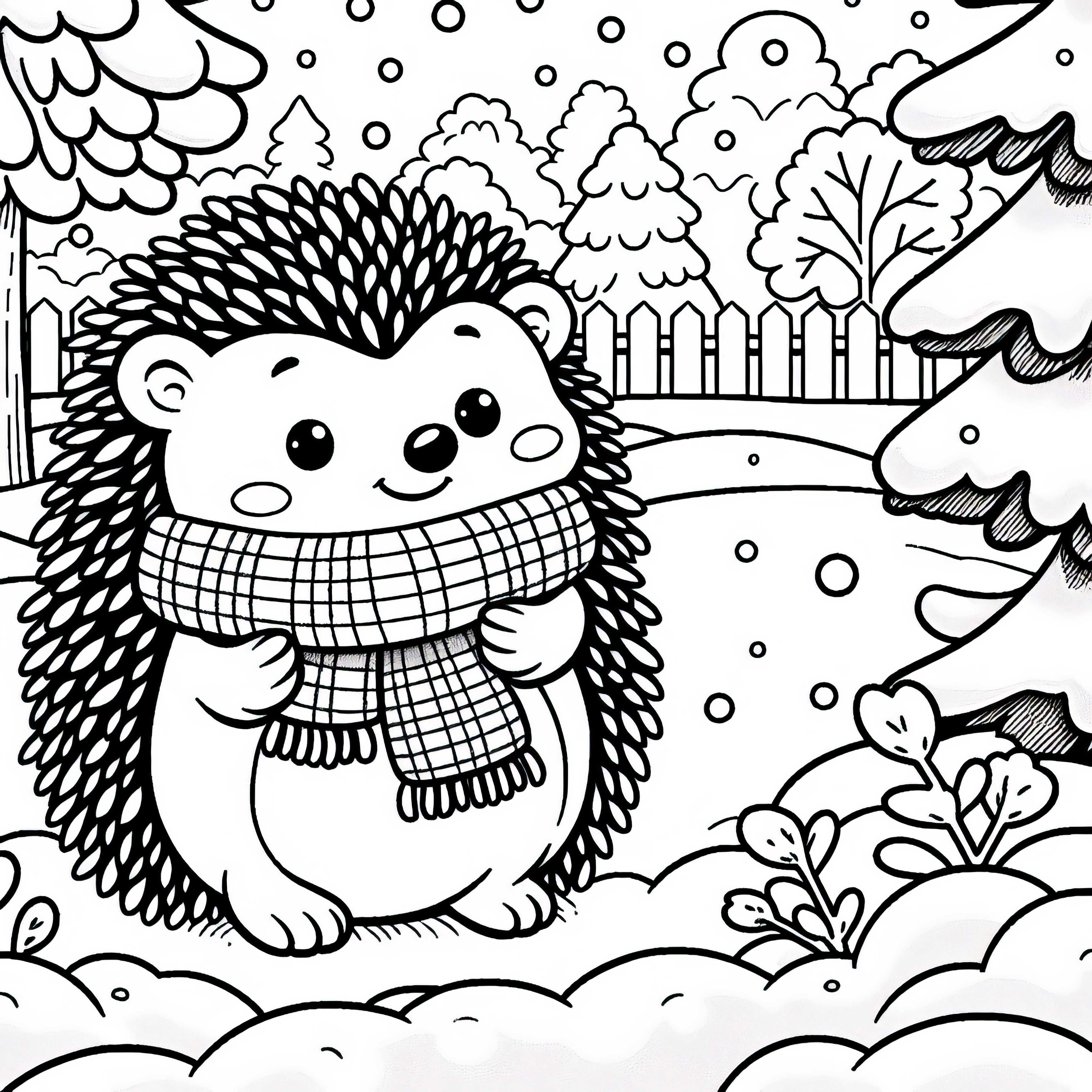 Сова в снегопаде с шарфом и шапкой – бесплатный раскрас